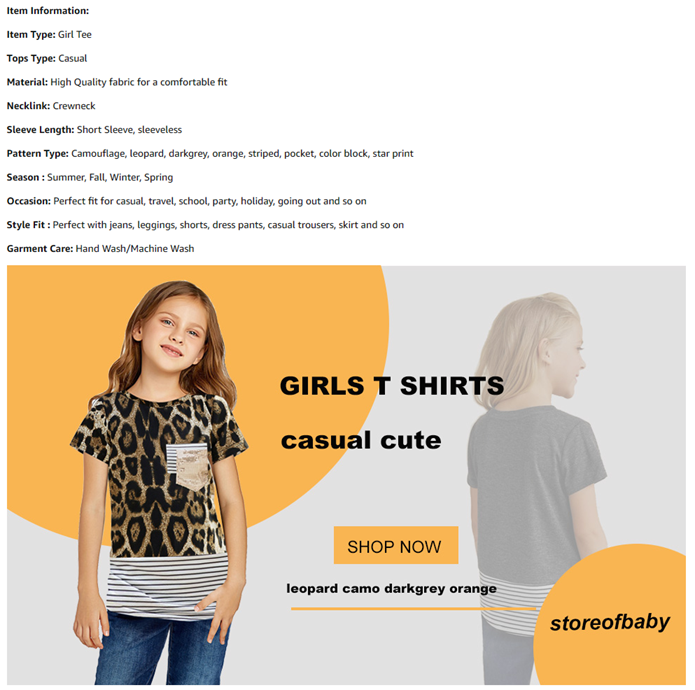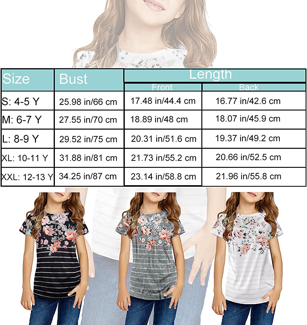 Stylish: Our girls tops feature a casual style with round neck and short sleeve, camo, leopard print, striped, pocket and color block will give this shirts a fashion look