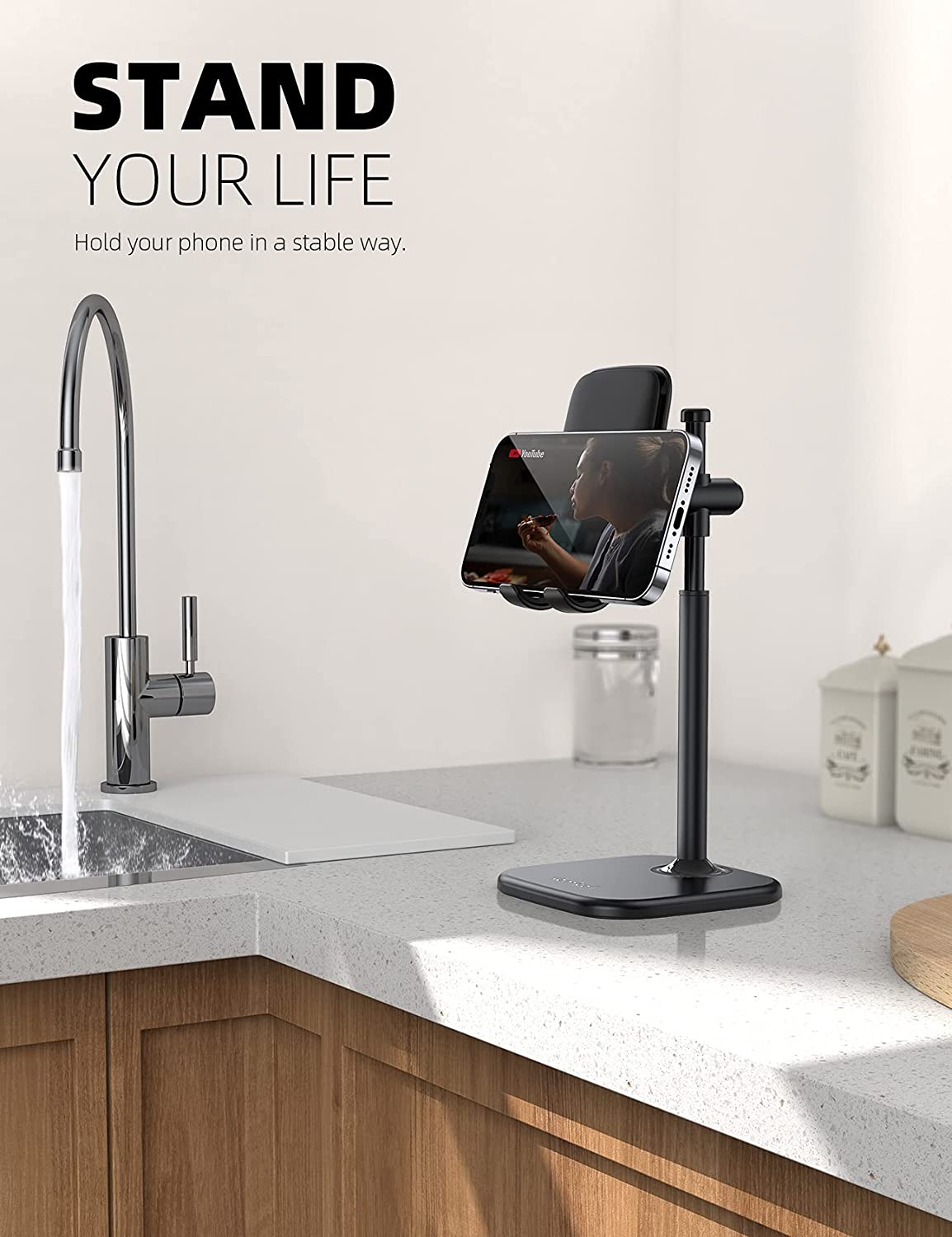 【Height Angle Adjustable】The Upgraded Lamicall phone stand can adjust the height from 159-205mm (6.25-8.07 inches). Easily adjust it to the height as you like by sliding the bar smoothly. 60 degrees angle adjustment provides a comfortable angle as you willing.