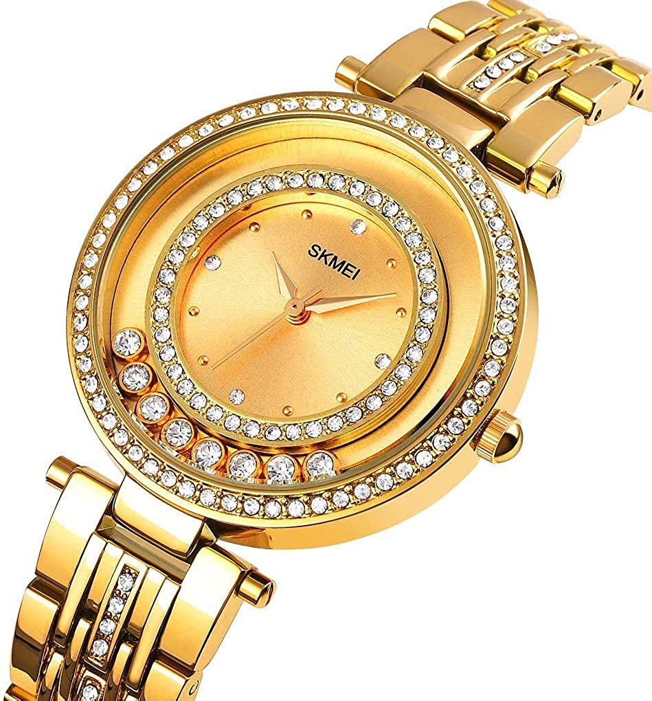 ★ Dress watches for women ★: Moving bead design,shining austria rhinestone,12 hours display,Clear and easy to read. There are 3 Colors (Rose gold, Gold, Silver) With Quartz Analog Display,Water Resistant To 30m (100 Ft).