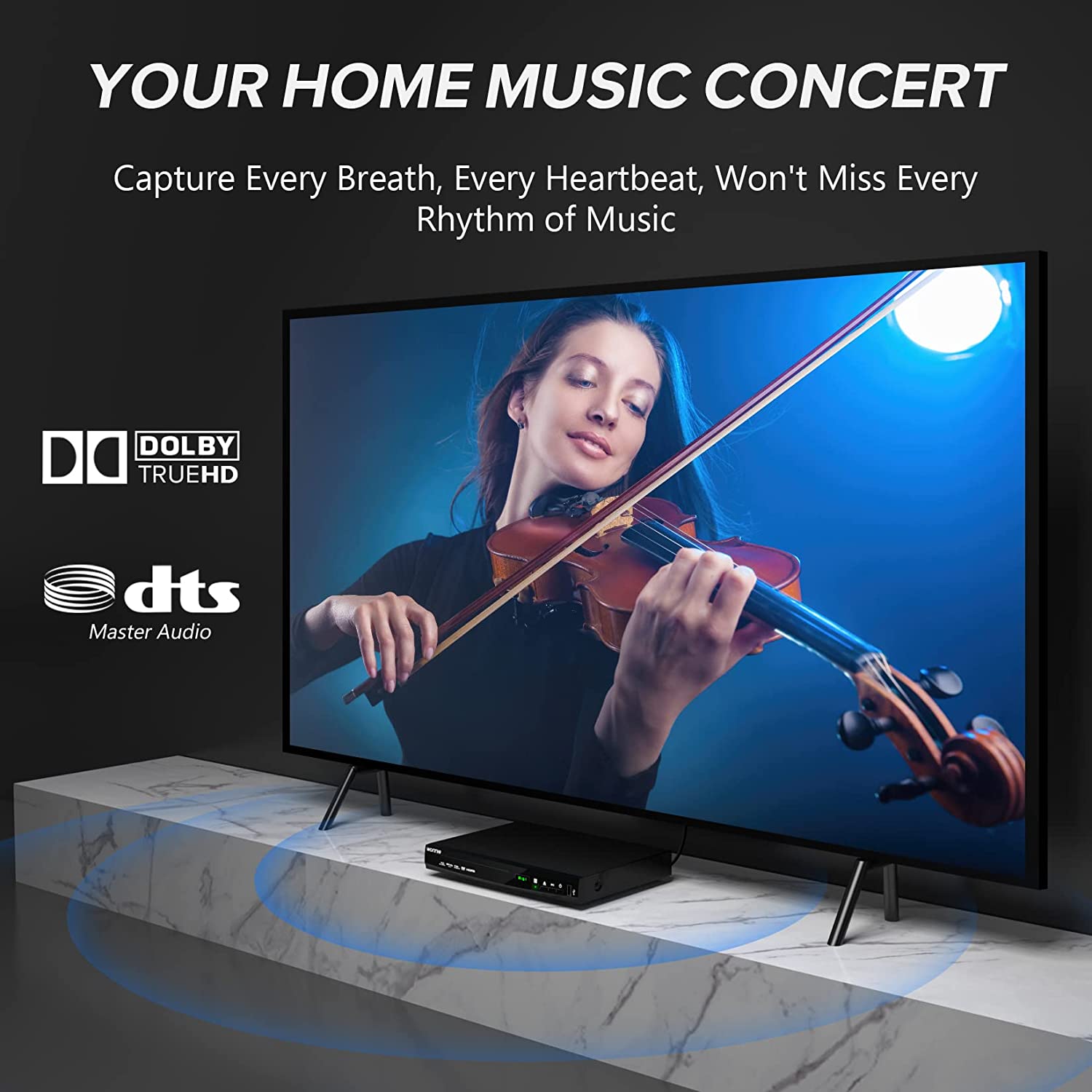 Born for home theater, supports multi-channel surround sound such as Blu-ray Dolby Digital, Dolby Digital Plus, Dolby TrueHD and DTS, truly showing the fullness and delicacy of the original sound, bringing more natural and realistic sound effects