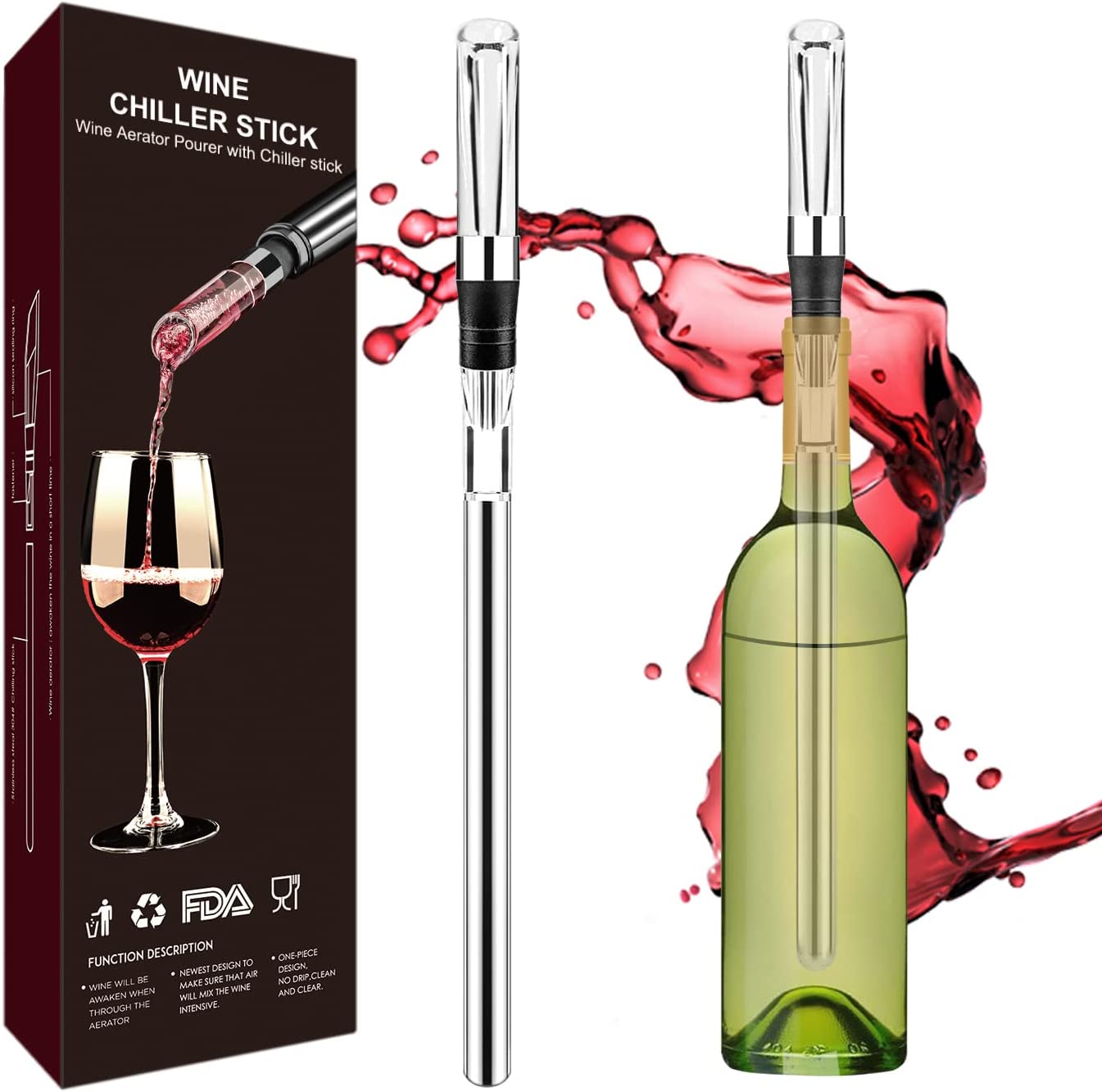 ? PERFECT WINE ACCESSORIES - IEOVO wine chiller stick combines cooling, aerating and pouring in one, which will keep your pre-cooled wine at optimum drinking temperatur. The built-in aerator will mix the optimal amount of oxygen during pouring to maximally enhance wine flavor. Sleek design to fit all bottle sizes.
