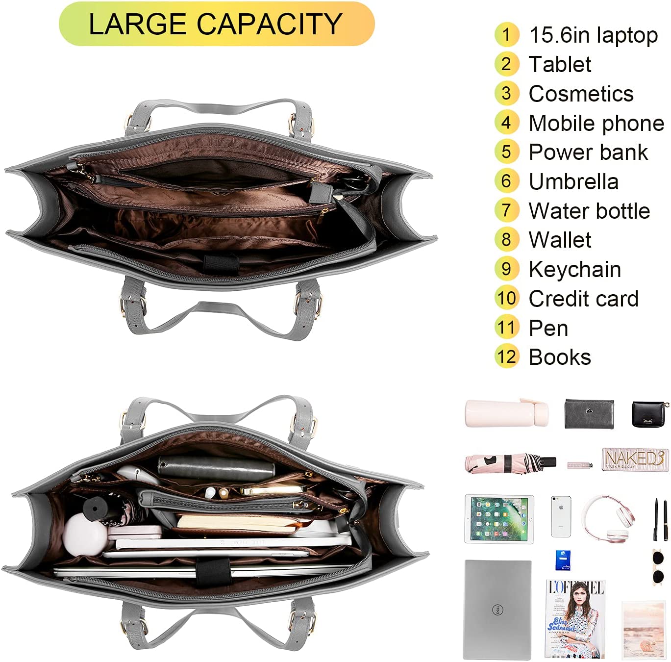 【Large Capacity Laptop Bag】The women laptop bag size in 17" L x 6" W x 11.5" H. The Computer bag is structured and roomy, and can accommodate a 15.6-inch laptop, thickened soft foam protective pad lining can fully protect your laptop from accidental impacts and scratches. In addition, the large-capacity shoulder bag can also store iPad, books, A4 files, mobile power, mobile phones, folders, passports, cosmetics, etc.It can carry all your essentials!