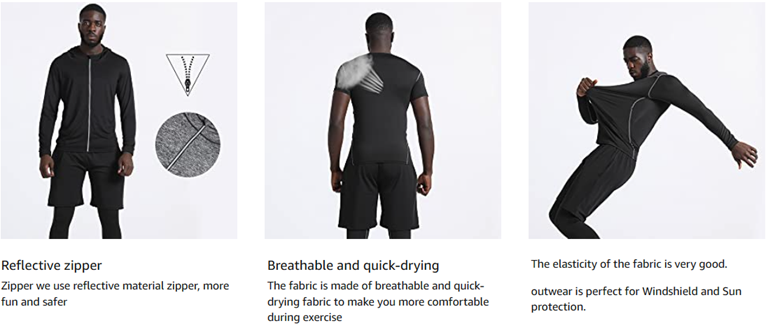 - ELASTIC AND COMFORTABLE FABRIC---92% polyester + 8% spandex breathable material, skin-friendly, slim-fit and tight-fitting, perfectly show your muscles and good figure. And protect your muscles during your muscle training. Work out the perfect figure. Quick-drying and quick-drying, they cool you down when in hot and warm you up when in cool.take away moisture from the skin, keep cool and dry during exercise, suitable for all seasons (indoor sports in winter).