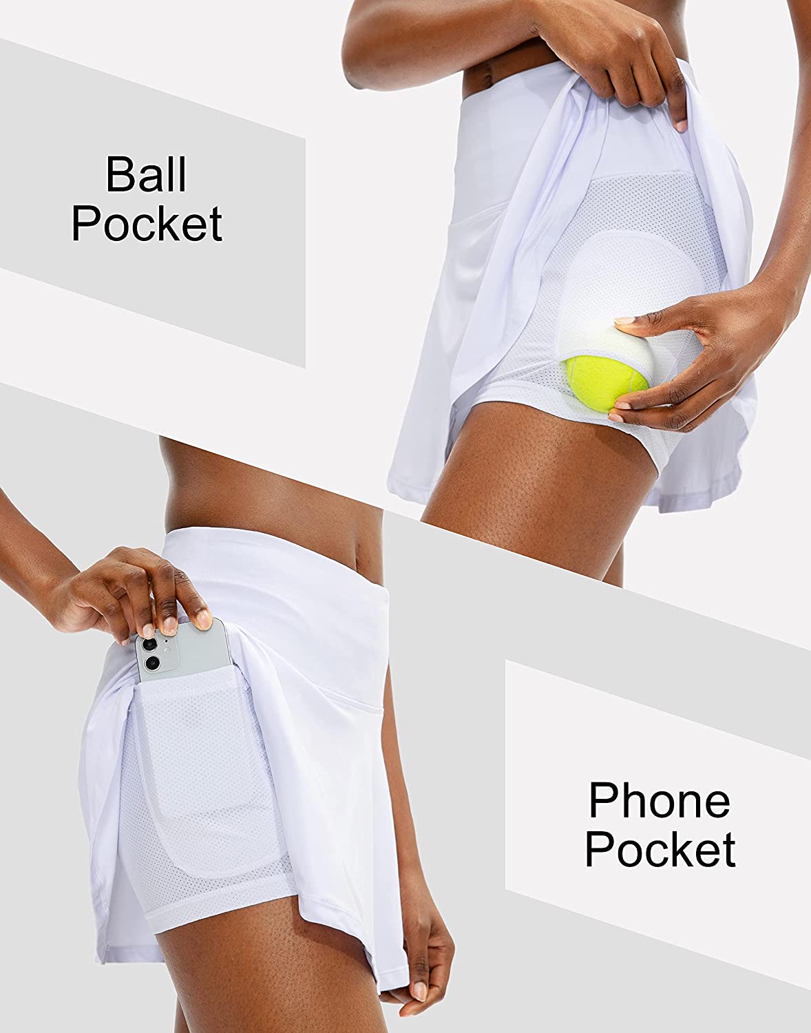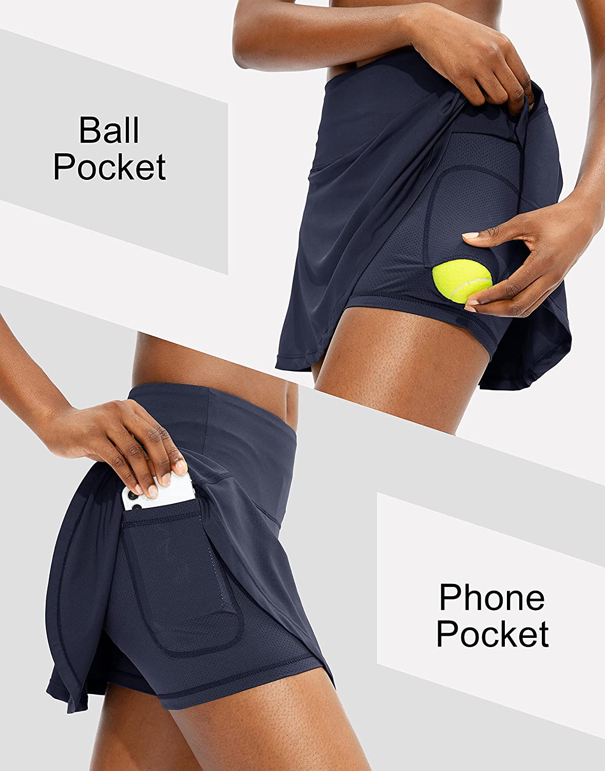• Built-in Short Liner: Skirts outer and built-in mesh liner shorts inner for ventilation. Liner is made of stretchy, breathable and quick dry fabric to keep you cool and safe when exercise.