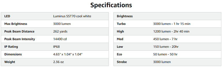| Included Components | Fenix E35 V3.0, LumenTac Organizer |