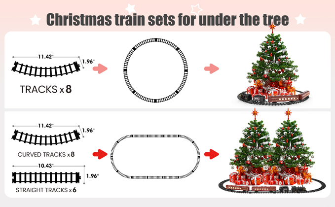 - ?【PERFECT CHRISTMAS TOYS GIFTS FOR KIDS】:This kids train set is a meaningful gift for every child. Model train toys for boys not only allow your kids to play happily, but also allow them to get a close look at the development of industry and technology.During the holiday season, you can also place the Christmas train under the Christmas tree to add a festive atmosphere.These are perfect birthday/Christmas toy gifts for 3 4 5 6 7 8 9 10+ year old boys/girls.