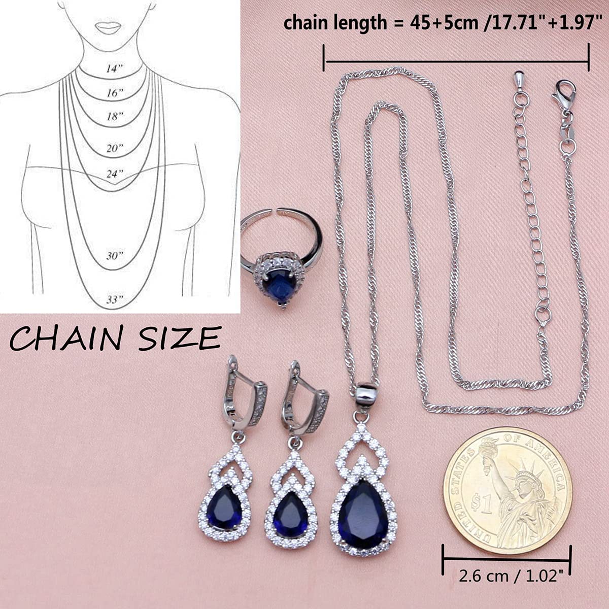❤Adjustable Size:❤ Necklace length: 17.71"+1.97", Bracelet Length: 7.09"+0.79",Ring Size :Adjustable . We specially add extension chains for necklaces and bracelets, So that different sizes can be applied, Necklaces and Pendants can be separated, You can change the necklace you like.