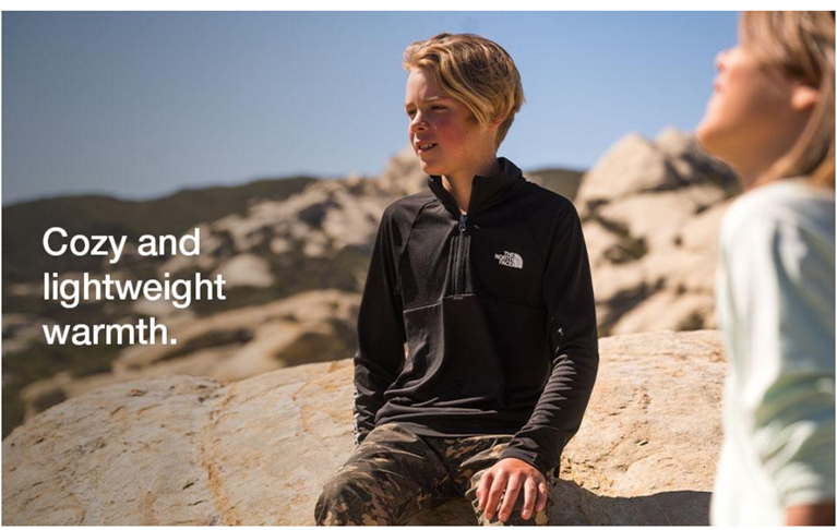 THE NORTH FACE. An embroidered logo on the left chest and back-right shoulder show on the outer jacket and chest pocket on the reverse for a signature TNF look.