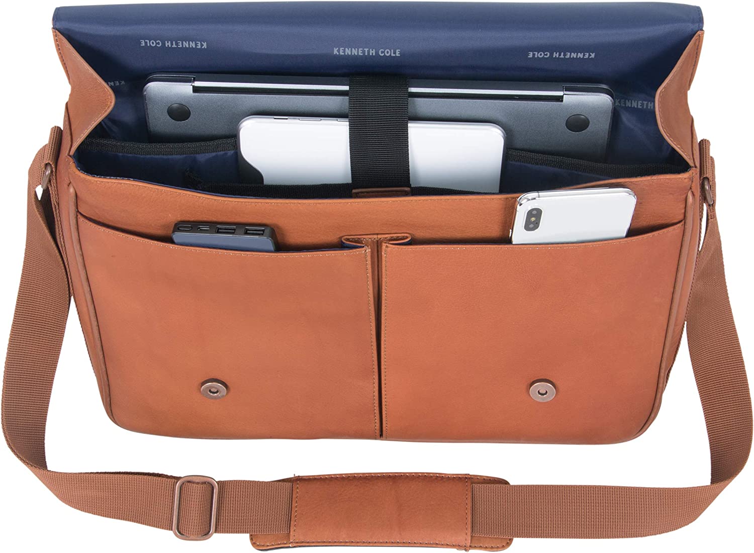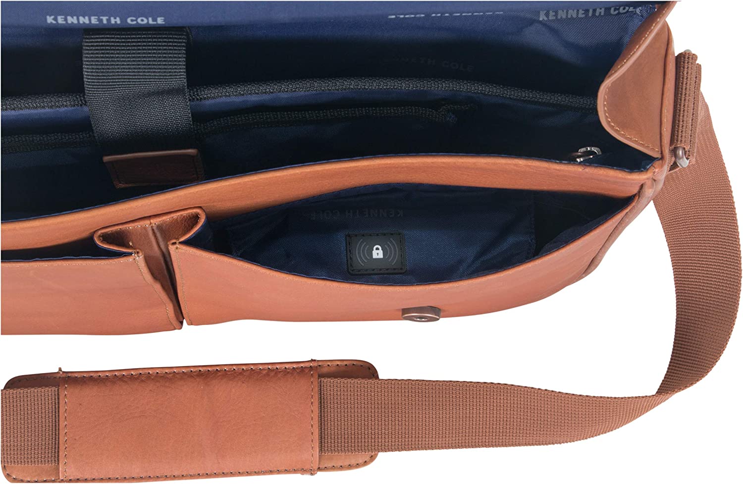 - Modern Mobility, Thoughtful Design: The "Come Bag Soon" Men's leather anti-theft RFID laptop messenger bag from the Kenneth Cole Manhattan collection is designed with innovative features and high-end materials so you can carry your office essentials comfortably and stylishly.