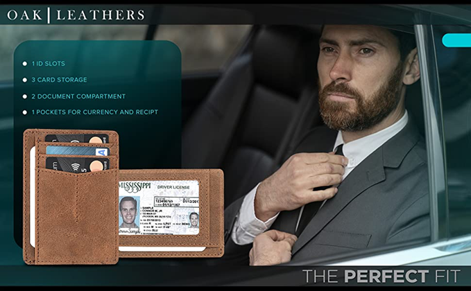 - ★PRACTICAL FEATURES : Comes in ONE_SIZE 4.4 x 3.7 x 0.4 inches. It has 5 Credit Card slots and 1 ID window, 1 Note compartment and 1 Extra Pocket for any documents you like. This wallet is unlike other wallet which has more than extra or less than required space.