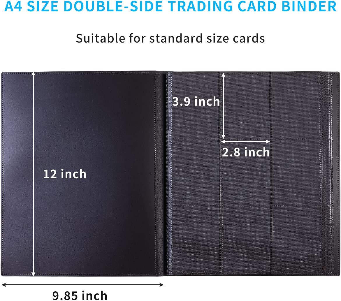 ❤️【DOUBLE SIDE AND OVERSIZED DESIGN】- 18 pockets per sheet (9 pockets per page), 24 sheets total 432 pockets give more pockets to organize and storage your card for one pokemon card binders holder. 2.7 x 3.8 inch extra larger size pockets fit the card with plenty of space for cards with sleeves, comfortably and transfer cards around when you need to re-organize