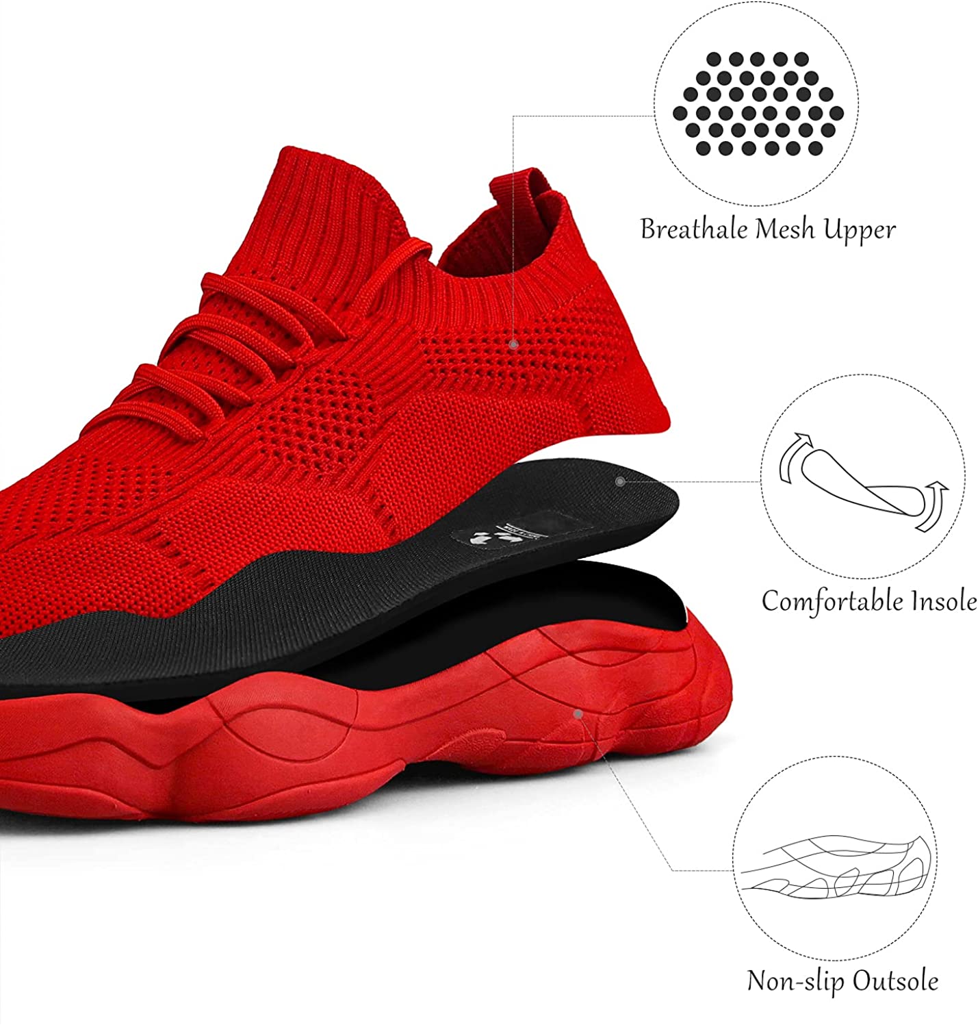Durable Outsole - The outsole of sneakers is made of non slip EVA with high resilience and softness, which is produced extremely durable material, the anti-skid grooves on the bottom can increase traction with the ground to protect you from sliding.