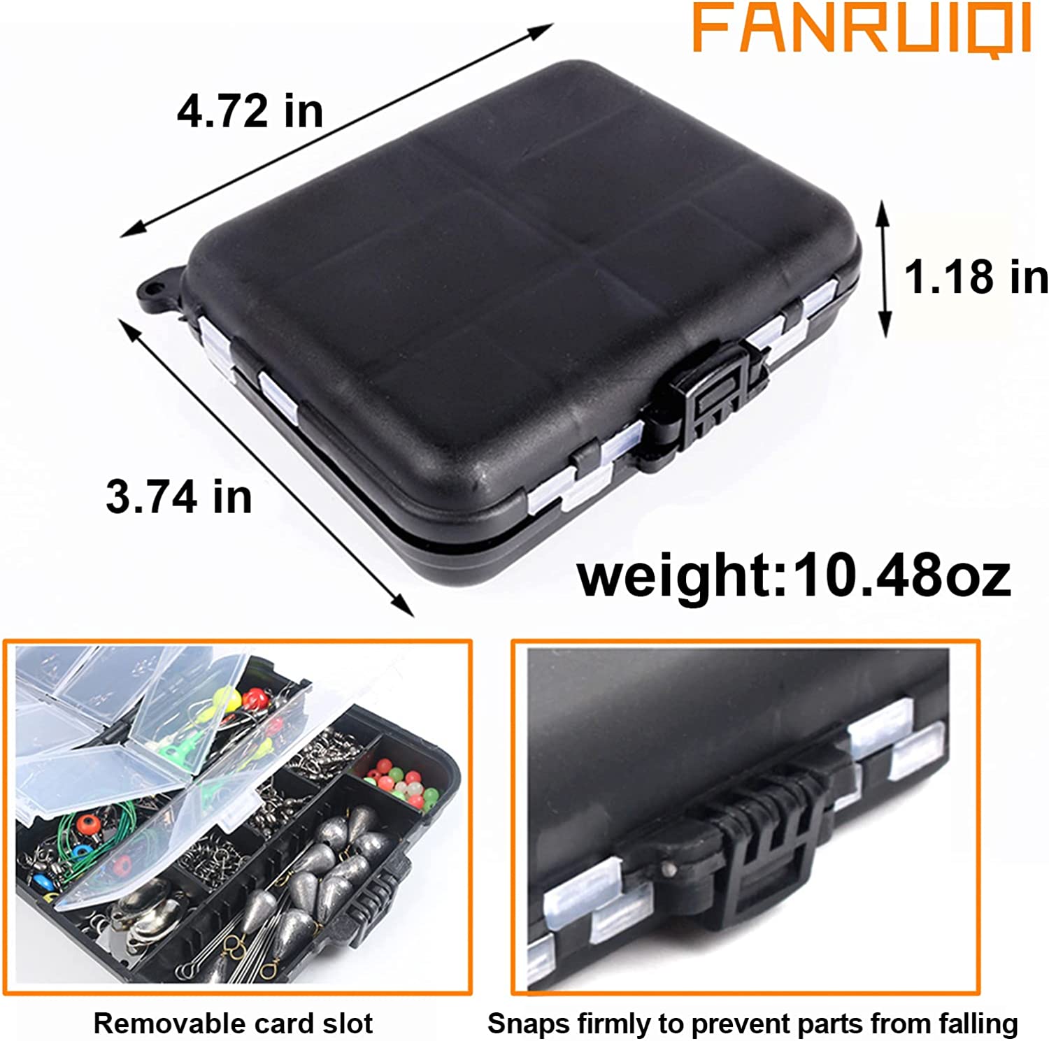• Easy to carry-The fishing tackle is equipped with a compact box with a black elastic lanyard. Fishing gadgets box easily fits in your fishing seat box, fishing backpack and fishing vest's pocket, portable size and weight for carry besides wherever you go to fishing.