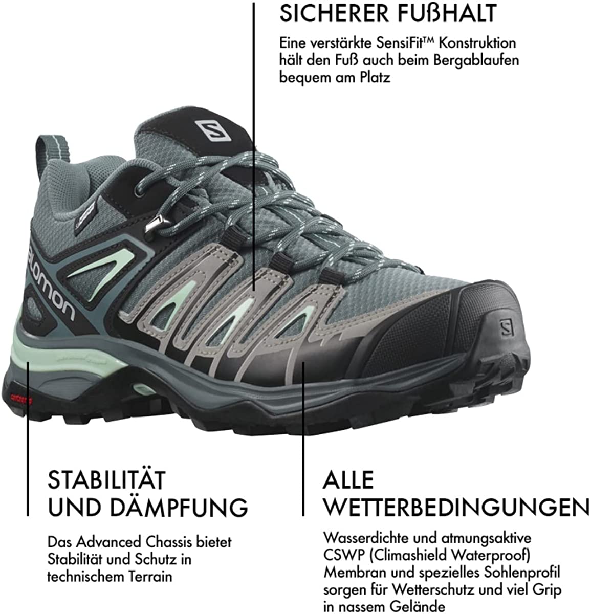 - WATERPROOF: ClimaSalomon technology adds complete weather protection to this flexible, lightweight, full waterproof hiking shoes for women