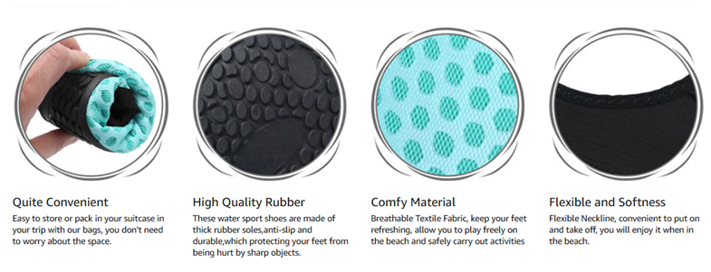 Thick Soles: Wearable and top-quality rubber sole, which protects your feet from being hurt by sharp objects when in water