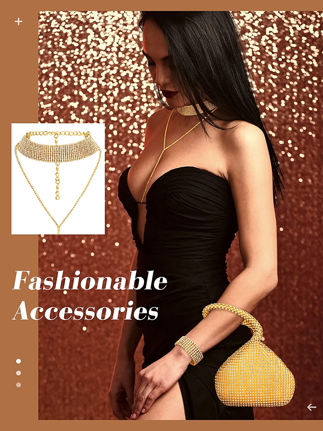 • Package content: you will receive 1 piece of crystal rhinestone choker necklace, 1 piece of stretch bangle bracelet, 1 pair of crystal dangle fringe earrings and 1 piece of rhinestone evening bag, which are ideal accessories for most women