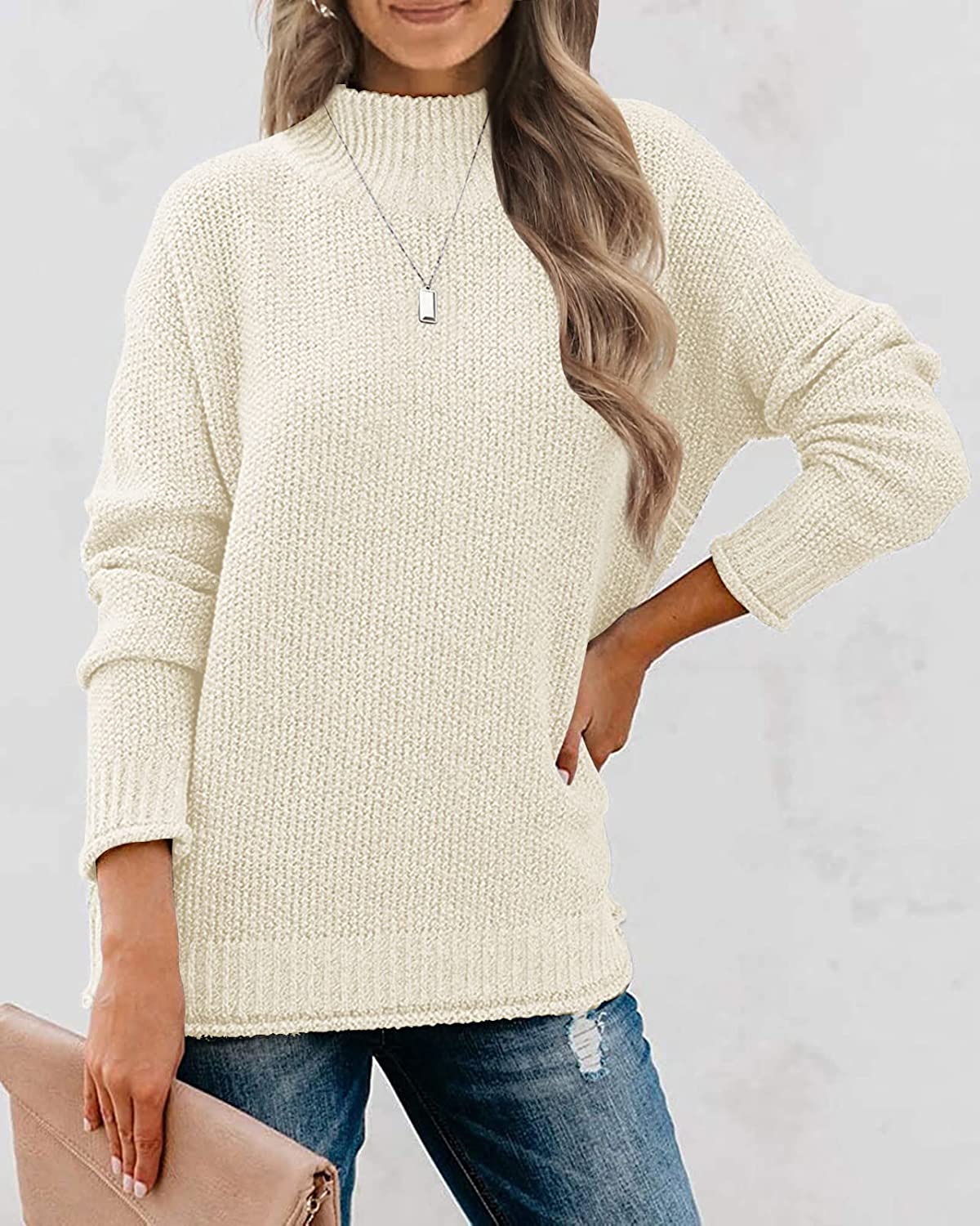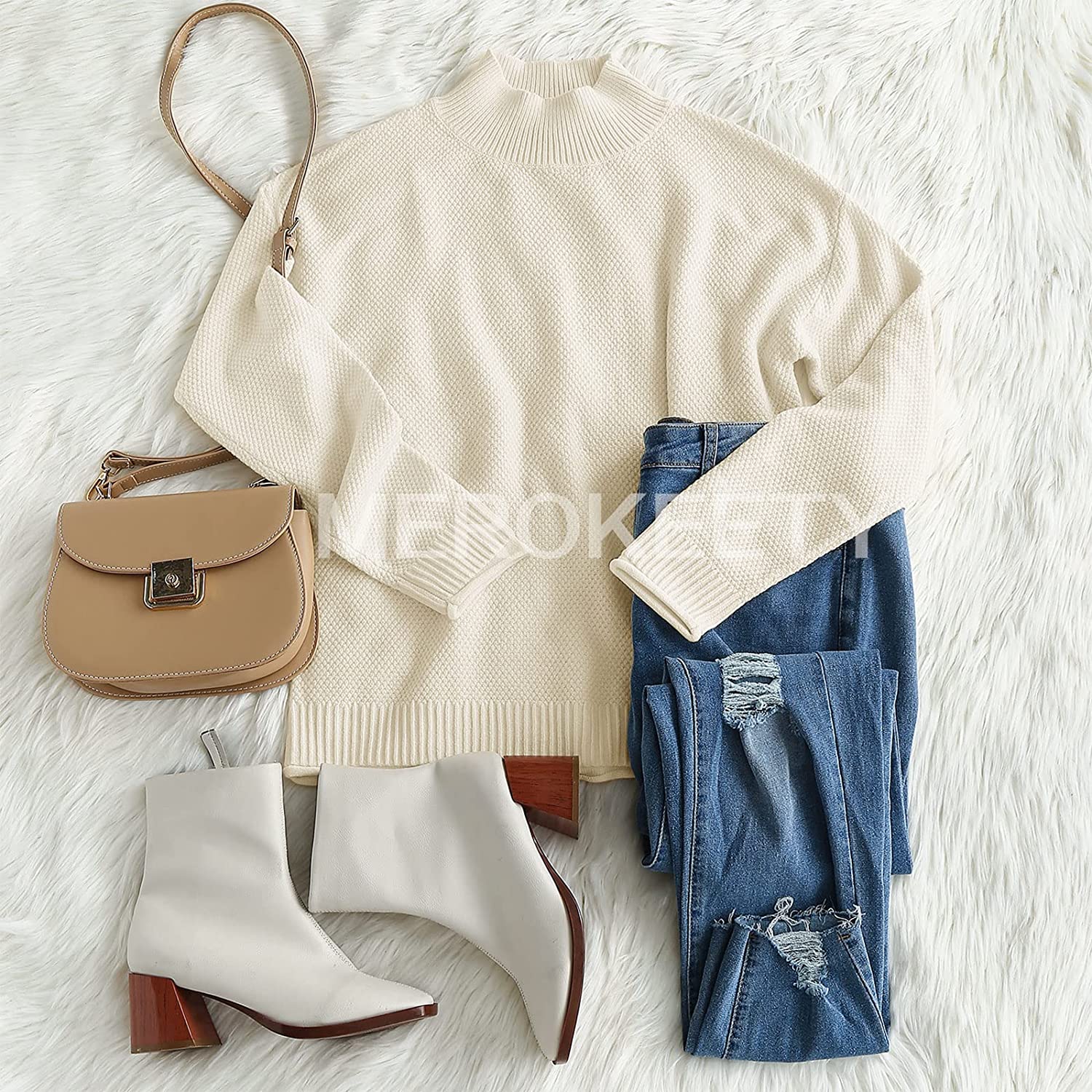 The turtleneck sweater is the perfect choice for a chilly day! Chunky knitted tops are stylish and warm. Soft fabric and slouchy style make this basic plain sweater will quickly become your closet favorite!