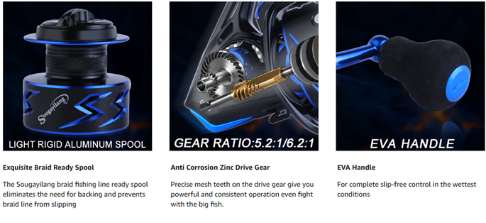 - Lightweight:narrow metal frame design and balancing system combine high performance in a compact spinning reel. Sougayilang provides easy-to-use, cost-effective spinning reels for anyone who likes fishing.