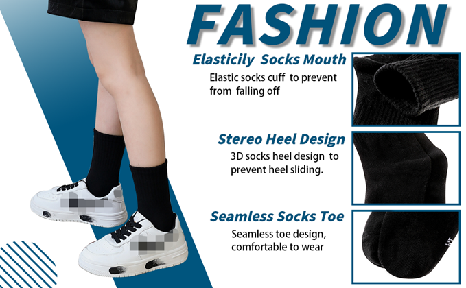 FIT MANY OCCASIONS- Multi purpose and practical, the socks can be worn both indoor and outdoor, they are suitable for many occasions, such as school commuting, playing sports, going camping, athletic, traveling and more. These crew socks are perfect for everyday wear and can be worn with a variety of outfits. Whether kids sporting sneakers, shoes, or boots, socks will work perfectly for a casual and sporty look. Matches with most outfits.
