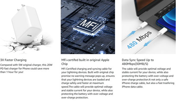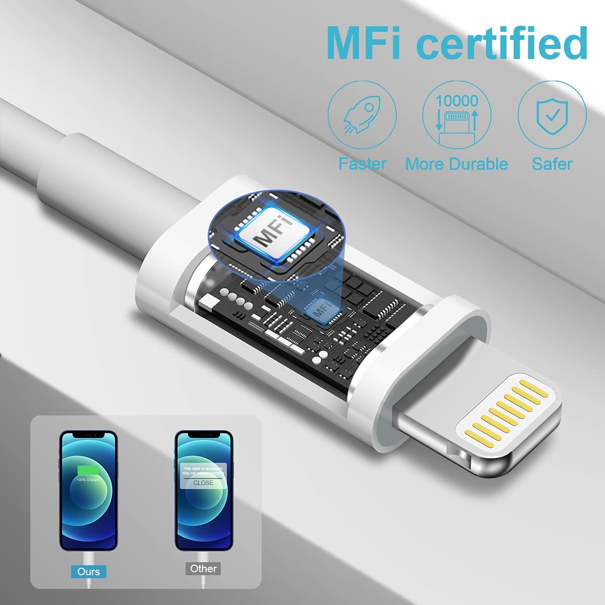 • [Apple MFi Certified Charging Cable] With the Apple MFi Chip, the Charging cord equips automatic chip recognition function. The Apple MFi Certification ensures 100% flawless compatibility with Apple devices. No more trigger warning messages. And synchronize Photos, Music, Videos and Files at a data transfer speed of up to 480Mbps(30MB/S). The transfer of 1G large files finished in 25s.