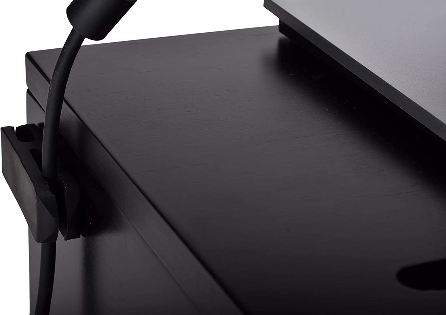 • KEEPS YOUR DESKTOP NEAT AND ORGANIZED: Includes a phone holder slot and a hub for cable management. Option to use as one large space or use the provided shelf to create two divided compartments.