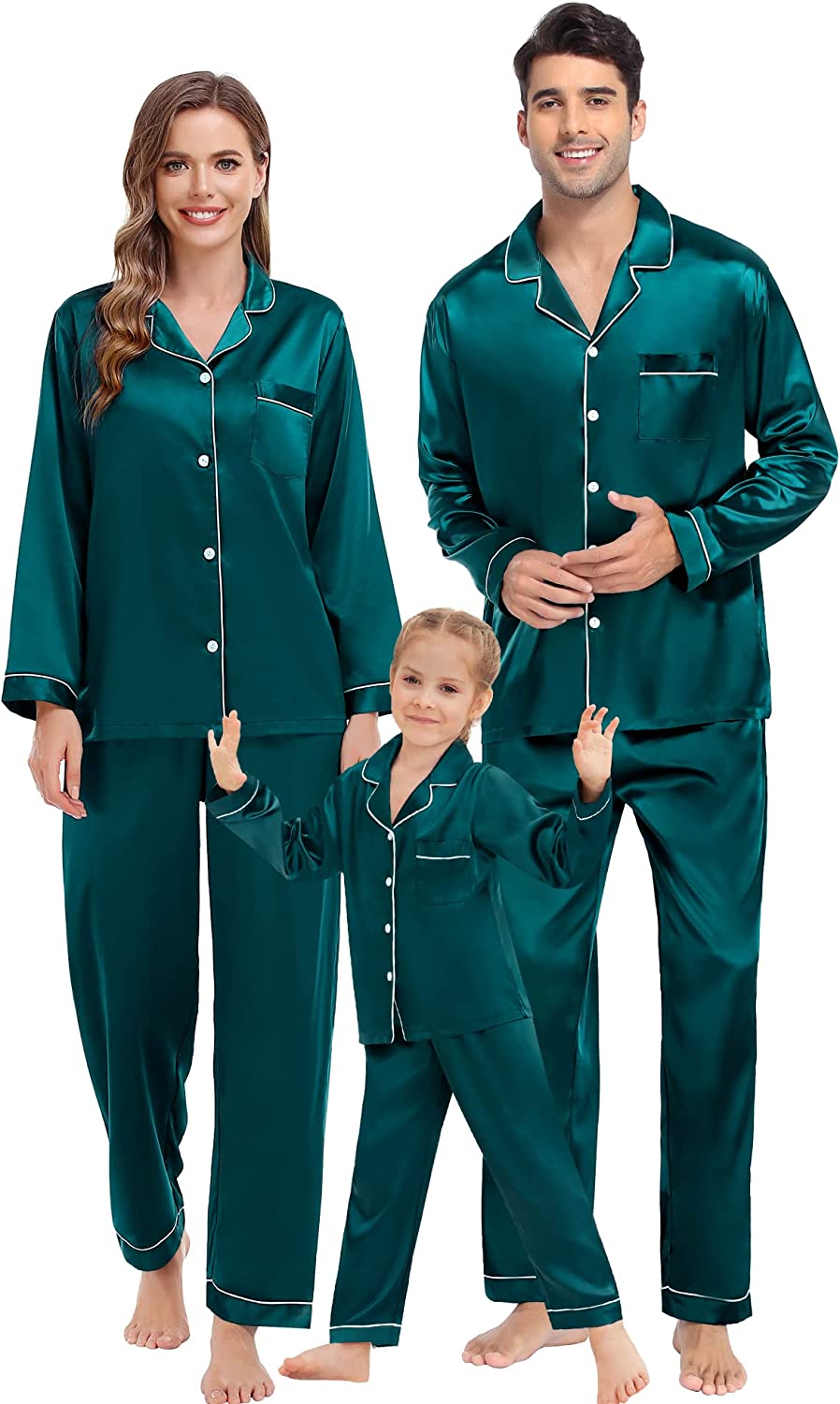 - SILKY & WARM: Our Christmas family matching pajama sets are made of lightweight Silk Satin Fabric(95% Polyester, 5% Spandex), which is soft, breathable, smooth, and skin-friendly, which can provide your family enjoy happiness & warmth time and have a sound sleep