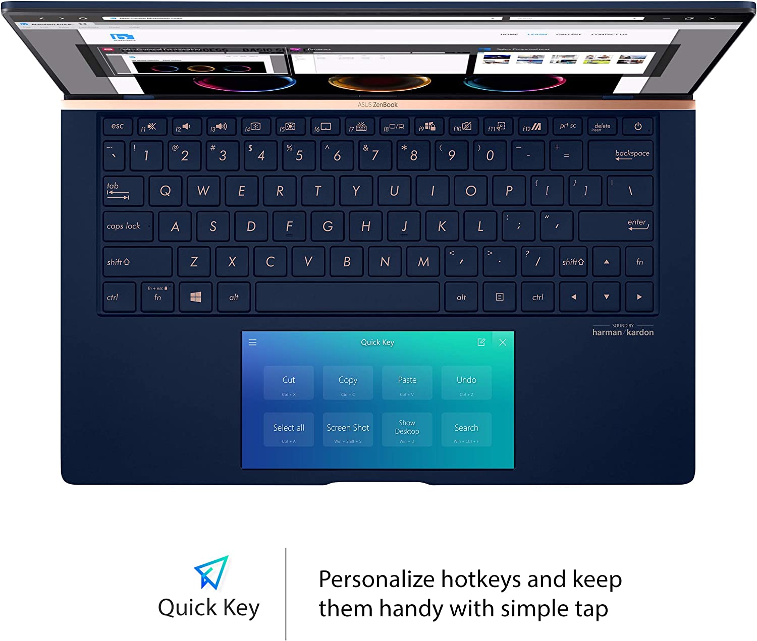 Zenbook 13 heralds a new era of Ultra portable Design, with an ultra compact, ultralight chassis. Featuring the four-sided NanoEdge display with Touch option, Zenbook 13 is 14% smaller than the previous generation Zenbook 13 (UX331) and weighs only 2.8 lbs. The new screen Pad 2.0 upgrades the traditional laptop experience, adding an interactive secondary touchscreen that enhances your productivity and gives you endless possibilities. Its intuitive smartphone-like interface lets you easily manage tasks and create your own seamless multitasking workflow. There's a series of handy Asus utility apps to boost productivity, including quick key — for one-tap automation of complex keyboard sequences — along with handwriting, number key, doc Xpert, slide Xpert and sheet Xpert. Screen Pad 2.0 intelligently fits many apps into the 5.65-Inch touchscreen, and you can effortlessly add apps to screen Pad for instant access. The newly-optimized screen Pad experience ensures that your favorite apps, such as ever note and spotty, will work perfectly on this secondary display right away, without the need for a screen pad-specific version. Asus also works closely with third party developers, including video-editing software developer Corel, to optimize Adaptive screen Pad tools for the ultimate productivity — and there's much more to come. The actual transfer speed of USB 3.0, 3.1 (Gen 1 and 2), and/or Type-C will vary depending on many factors, including the processing speed of the host device, file attributes and other factors related to system configuration and your operating environment.