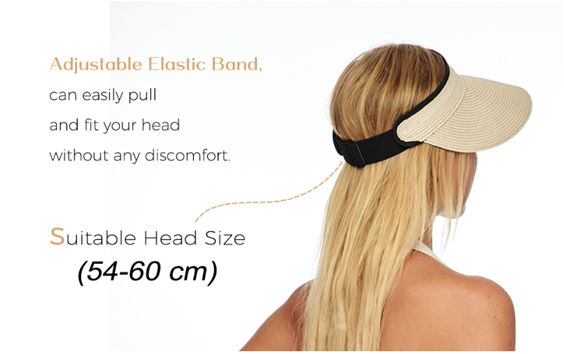 Portable:This breezy straw visor rolls up and secures with an elastic band for easy storage in your tote or trunk;