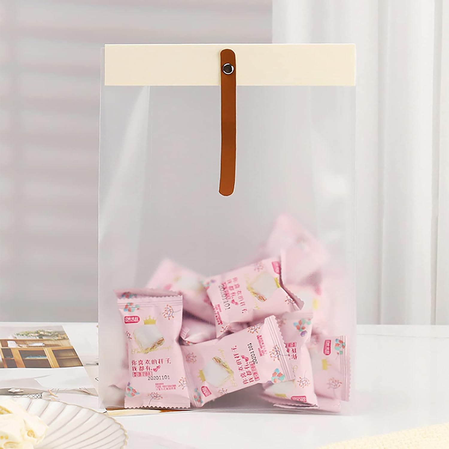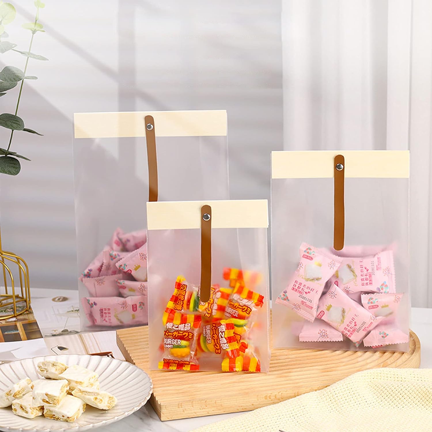 ☺Features1.Reusable, durable, clean.2. Fit for business :you can paste your brand label on the surface for retail or sample display packaging3.Things wrapped with it are like exquisite small gifts, which are necessary for baking, home kitchen, and parties.4.For decoration, weddings, baptism, parties, birthdays, anniversary,camping, product shows, commercial use etc.☺How to use 1.First pass the wood grain card and one side of the bag with a buckle2.Fold down the wood grain card, then pass through the other side3.Finally buckle the leather strip☺Specifications:1.Type:Cookie Bags2.Material :PP3.Size:S:5.1x2.3x7in/13x6x18cmM:5.9x2.5x8.6in/15x6.5x22cmL:7.2x2.5x10.2in/18.5x6.5x26cm4.Color:Clear5.Package Weight : 0.55kg☺Package Includes20 x Stand up plastic bags