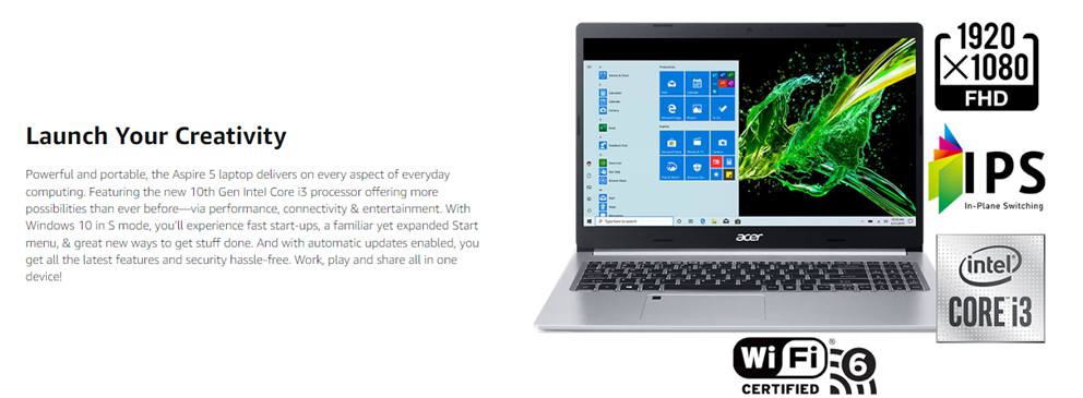 Acer Aspire 5 A515-55 Amazon Choice Intel; Core i3-1005G1 15.6 Full HD SSD