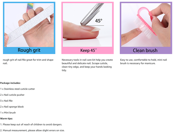 2. The professional grade manicure too good for use in home, you needn't spend more time and money in manicure salon, beautify nail by yourself, freely design you nail shape and enjoy the funny process.