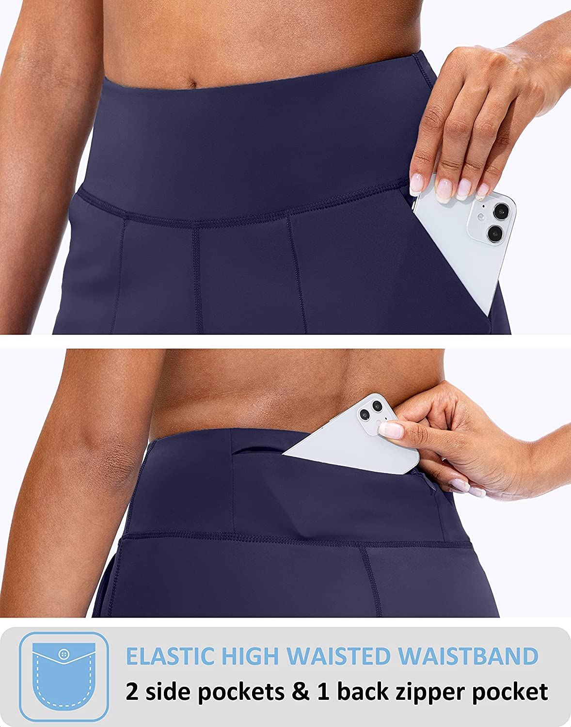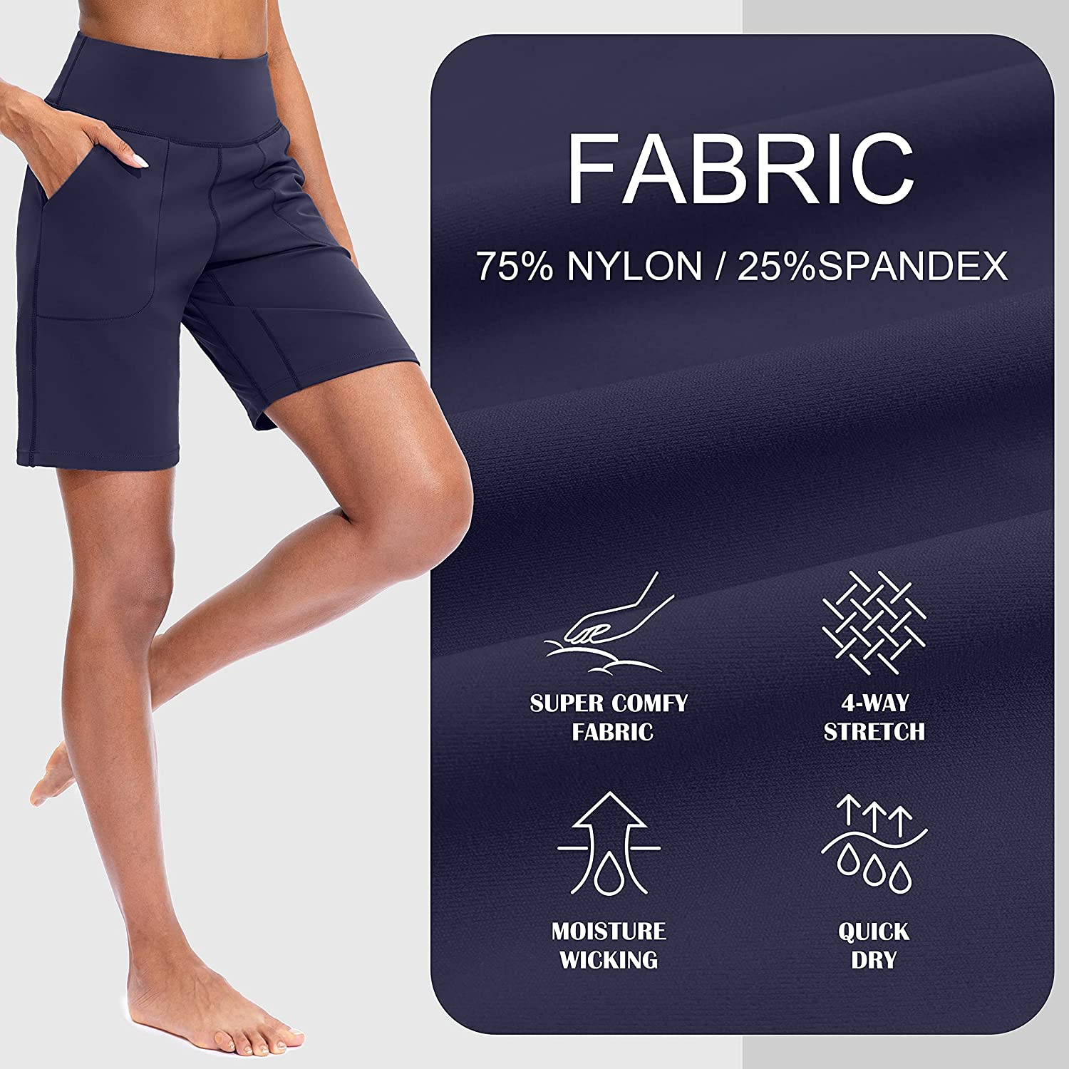 [3 Pockets] The womens bermuda shorts features one back zipper pocket on waistband and two side pockets are deep enough to hold your phone, cards or keys without falling out, free your hands during running or exercise.
