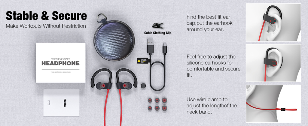 - [Ergonomic Design for Sports] Ergonomic design provides a comfortable and secure fit that doesn’t protrude from your ears especially for Sports, Workout, Gym. Equipped with 4 pairs of ear caps to ensure your running headphones fit comfortably and noise cancelling in ear. Just move as you want.