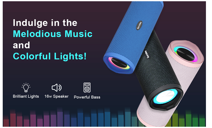 - [ LED Light Show Speaker ]: Get the party started with multi-colored flashing lights that are sure to create an exciting atmosphere! bluetooth speakers portable wireless can light up your music. You can enjoy the LED light show when you using the portable wireless Bluetooth speaker listen music. Night Light Changing Wireless Speaker with 3 patterns of LED light let your music become more interesting. Our Cool Bluetooth Speaker with light can be as a gift for your friends or kids.