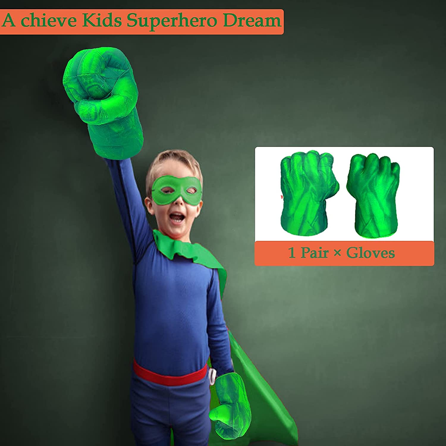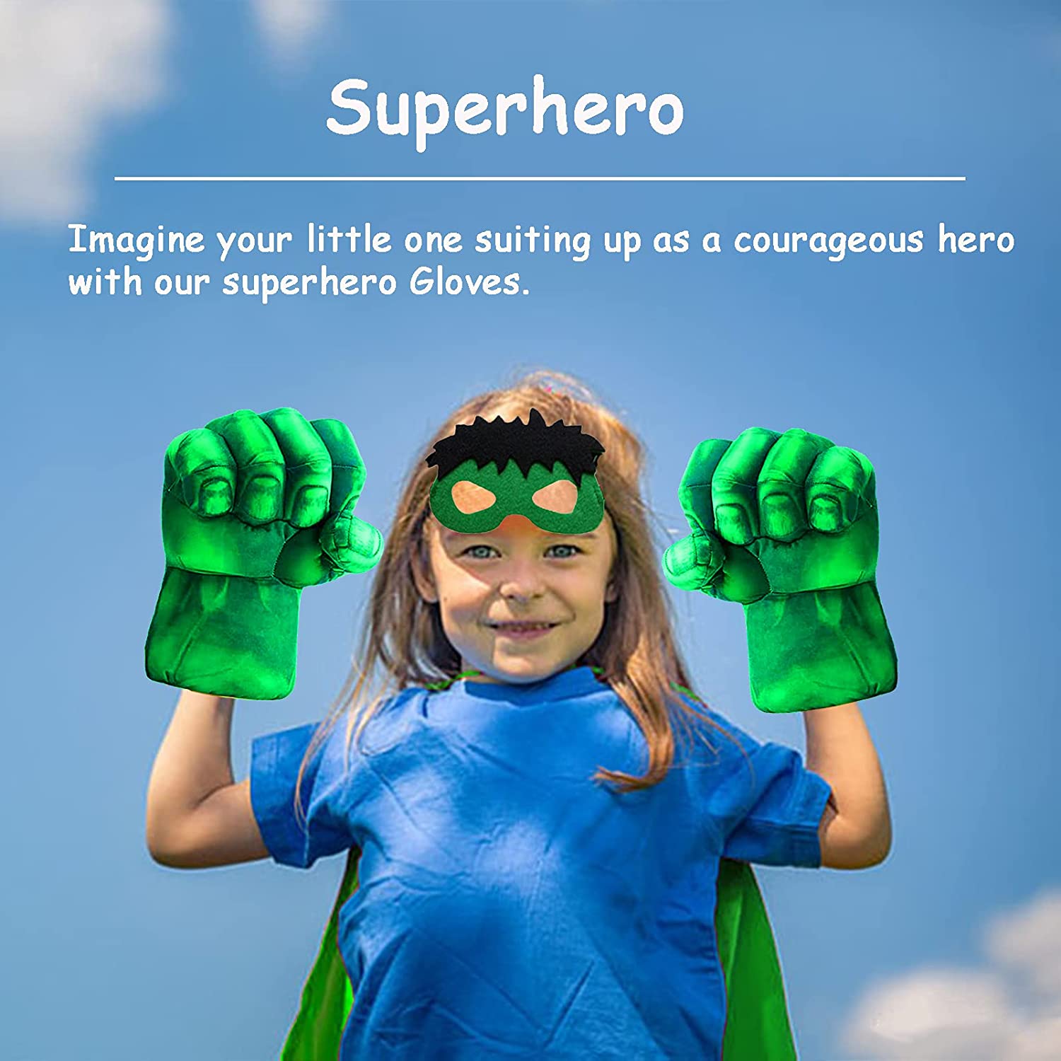 Superhero Hands for Kids, Superhero Boxing Gloves Smash Fists Soft Plush Toys Cosplay Costumes Accessories for Boys Girls Christmas Halloween Birthday Gift (1 Pair, Green)