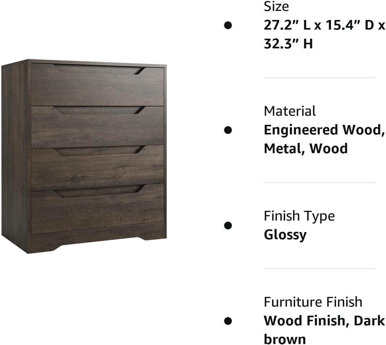 URKNO Modern 4 Drawer Dresser, Wood Chest of Drawers with Storage, Clothing Organizer with Cut-Out Handle, Storage Cabinet, Nightstand for Living Room, Bedroom, Hallway, Dark Brown