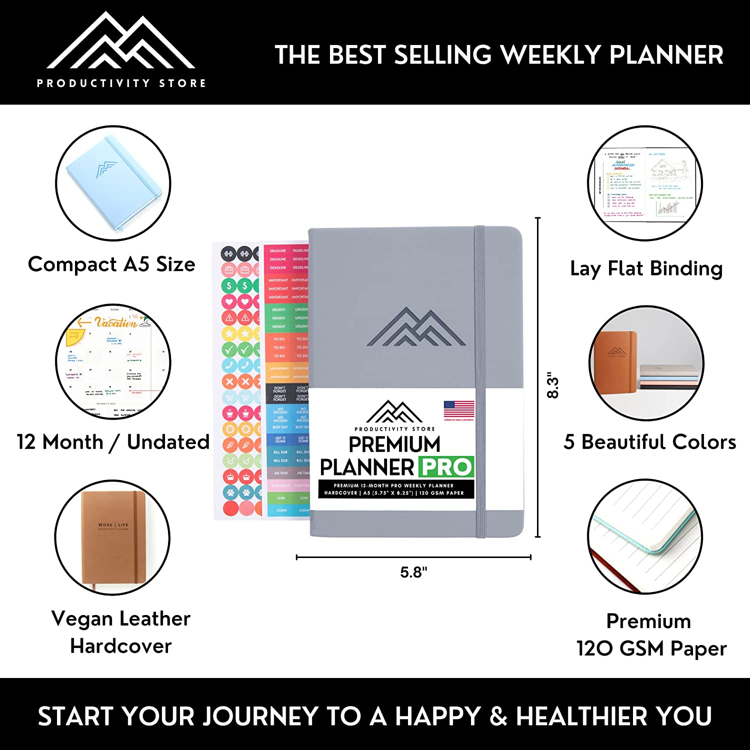 ✅ SAY HELLO TO THE PLANNER THAT WILL CHANGE YOUR LIFE: Crush your personal and professional goals with Productivity Store’s flagship planner. Get that promotion, start that business or break that bad habit. Evidence-based layouts that increase goal-setting success, happiness and work-life balance.