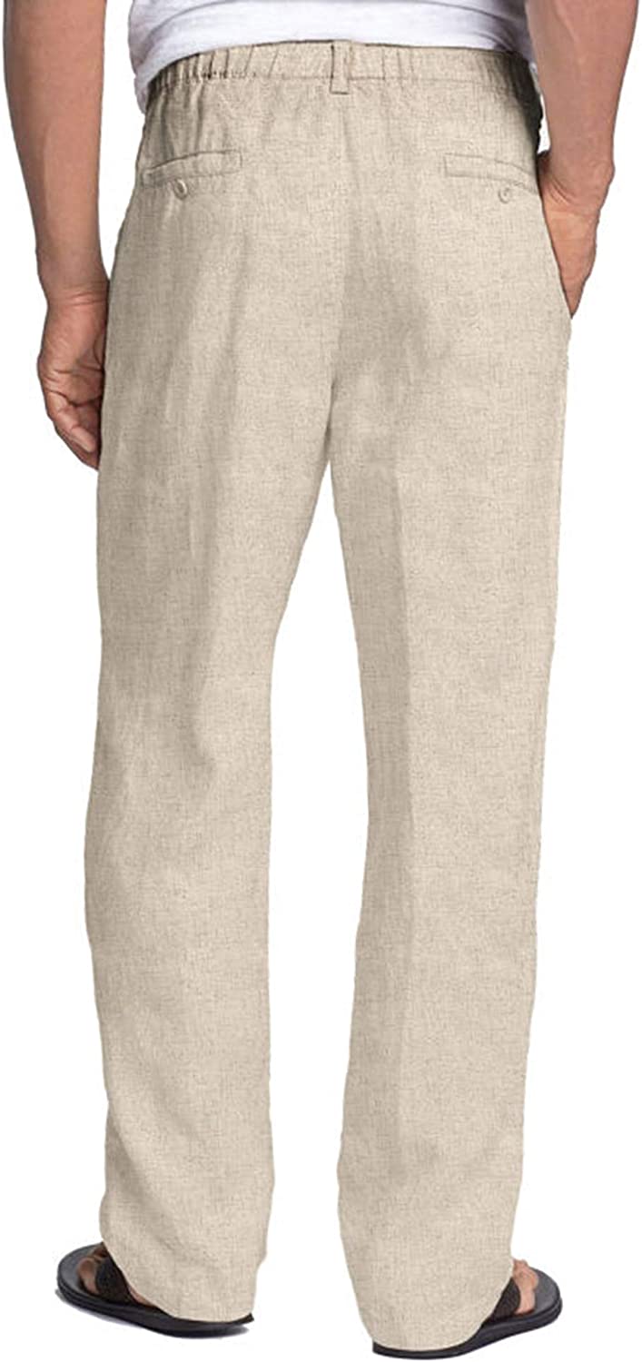 - Casual Pants Design --- Men’s elastic trousers feature a adjust drawstring waist, two slant pockets and back button-through pockets, premium breathable cotton fabric, loose fit cut, solid color, bring you all-day comfort.