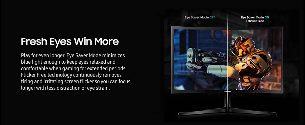 • FRESH EYES WIN MORE: Eye Saver Mode minimizes blue light to keep eyes relaxed and comfortable when gaming for extended periods; Flicker Free technology continuously removes screen flicker for less distraction or eye strain
