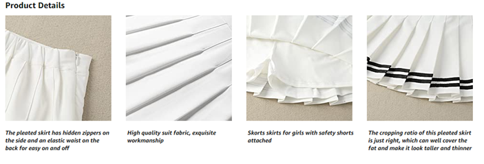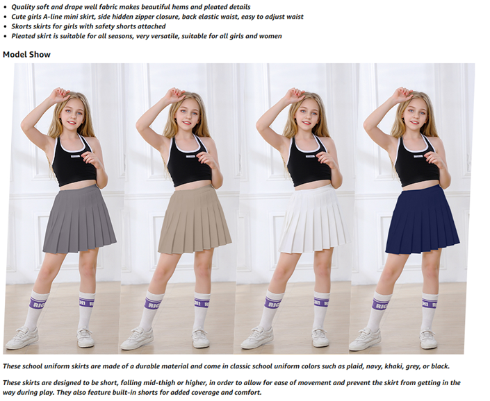 ❤Design: Cute girls A-line mini skirt, side hidden zipper closure, back elastic waist, easy to adjust waist