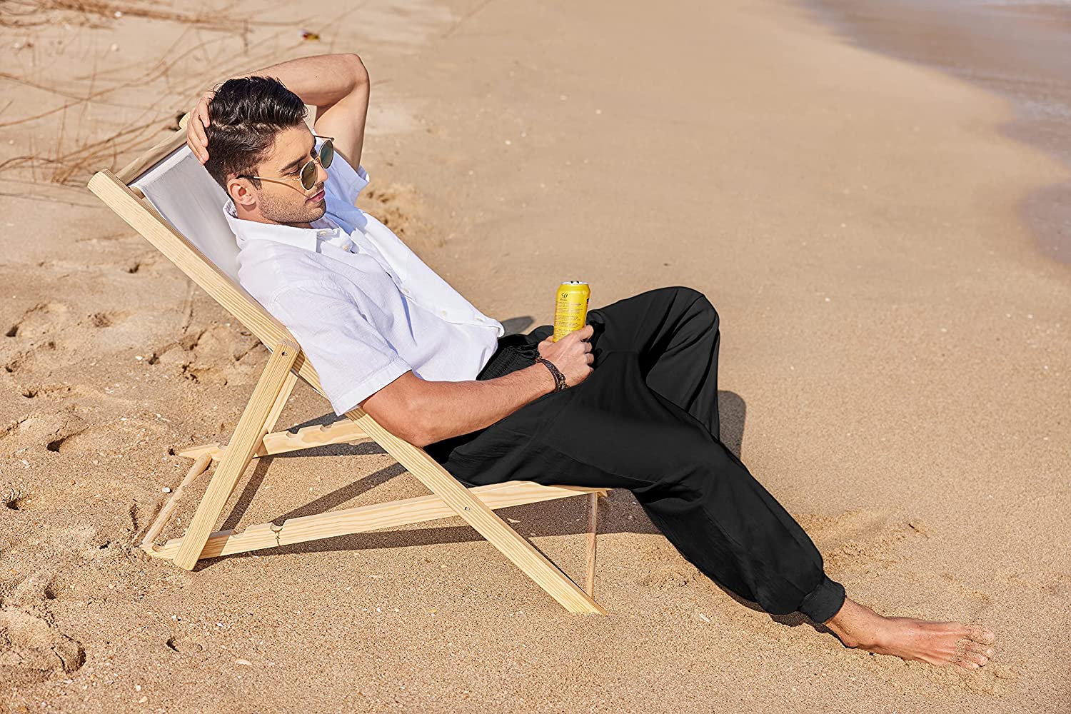 COOFANDY Men's Hippie Pants Linen Yoga Trouser Summer Casual Stretched Waist Loose Fit Beach Pants