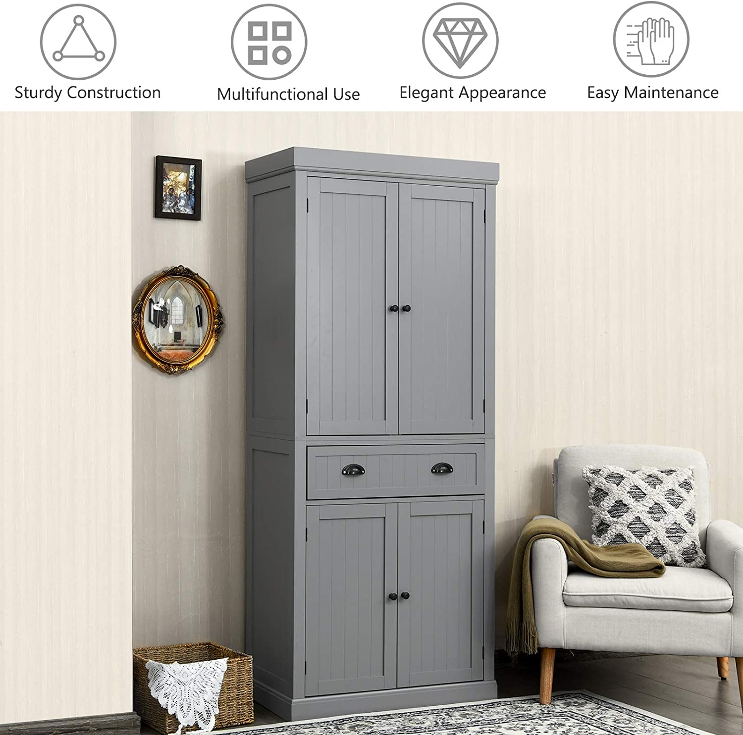 ⭐【72” x 30” x 16” Large Cupboard Cabinet】Measuring 72” x 30” x 16”, the practical storage cabinet offers you large storage space to display whatever you want. With its elegant design, you can place the pantry cabinet in your kitchen for seasoning bottles and dishes, bedroom for clothes, living room for books, as well as bathroom for towels.