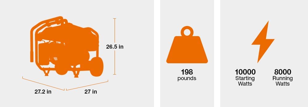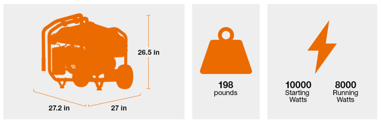 | Included Components | Generac 7676 GP8000E 50 ST / CARB Portable Generator, Handle & Wheel Kit, Engine Oil, Oil Funnel, Owner's Manual |
