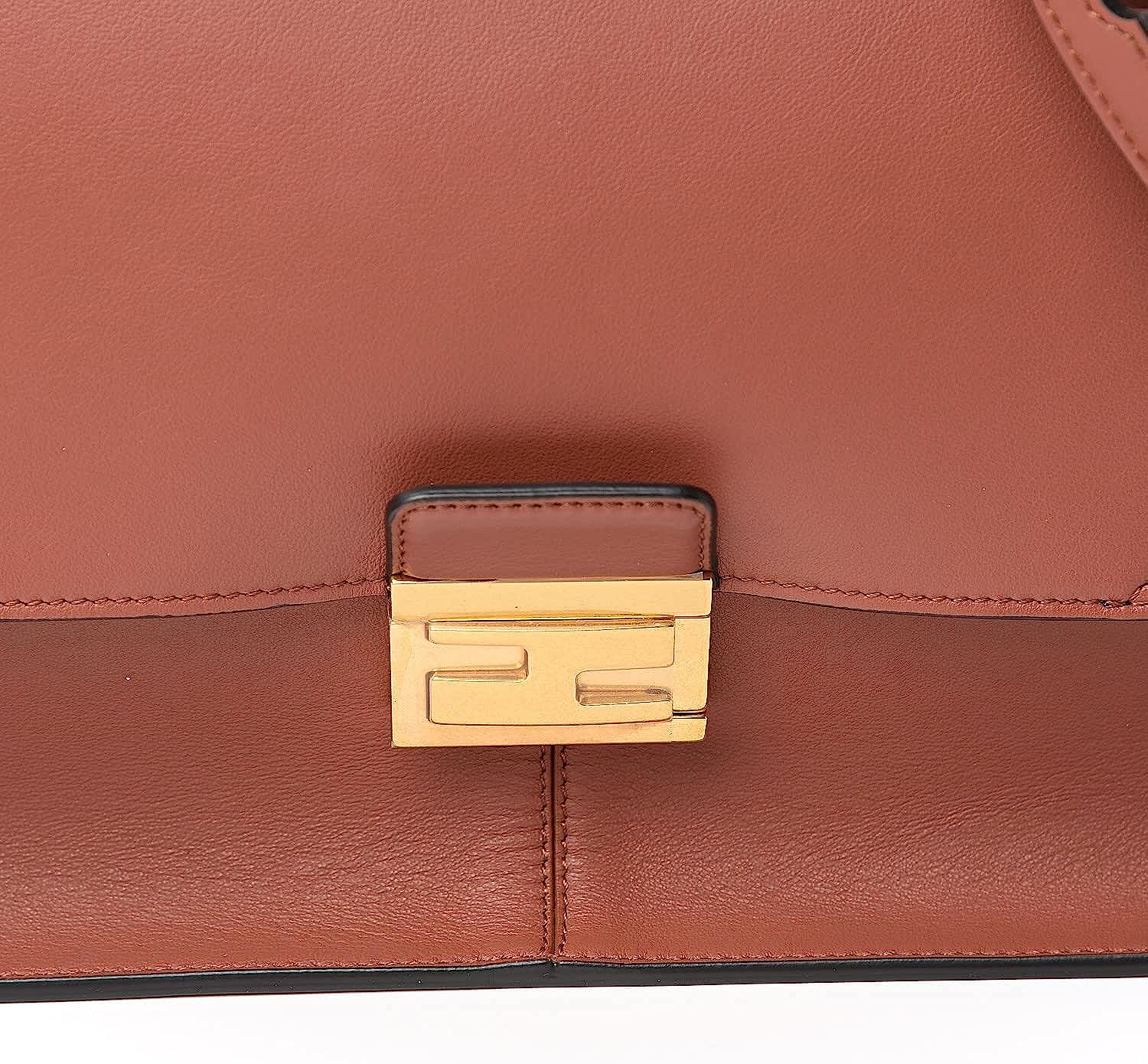Fendi Kan U Rust Brown Calfskin Leather Large Shoulder Bag 8BT314