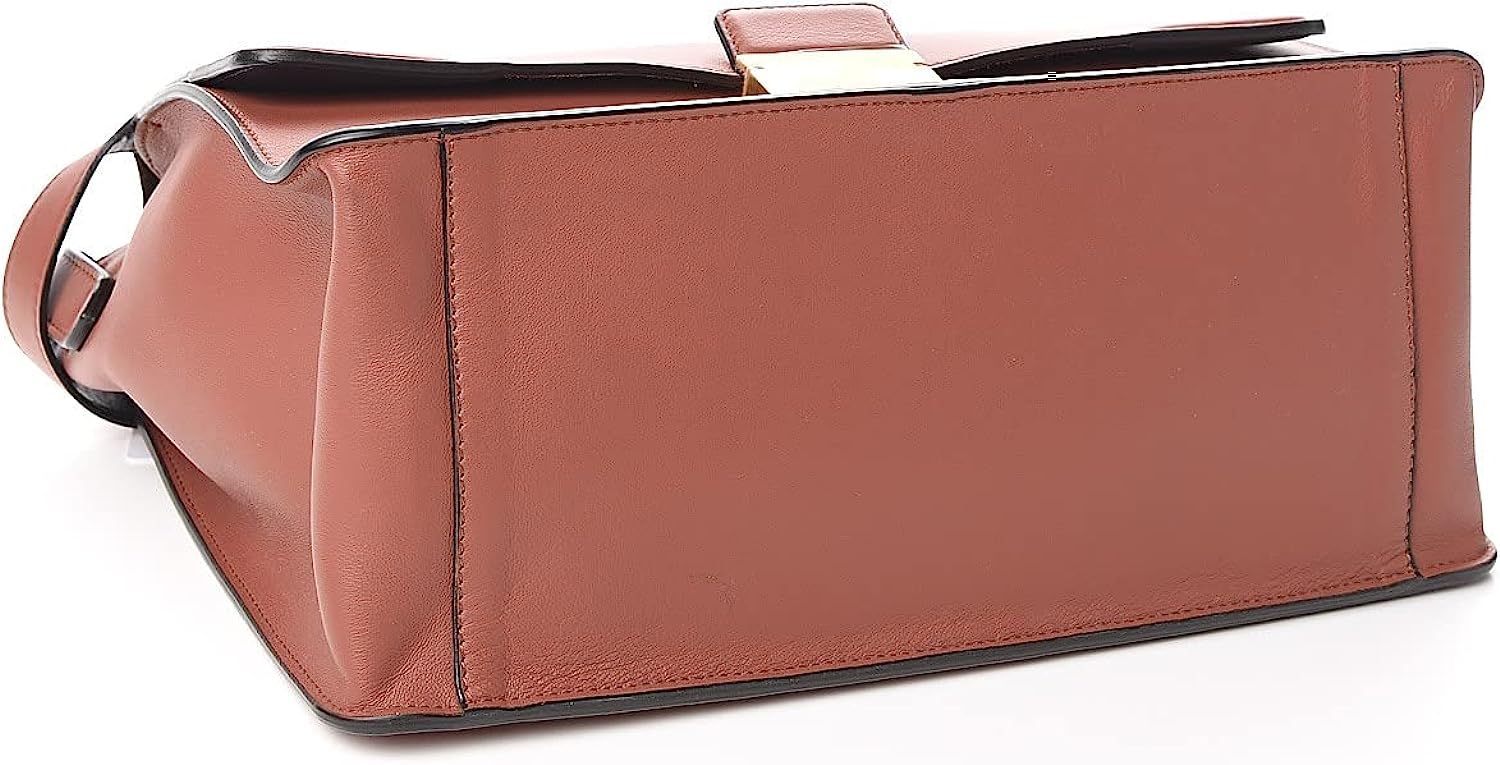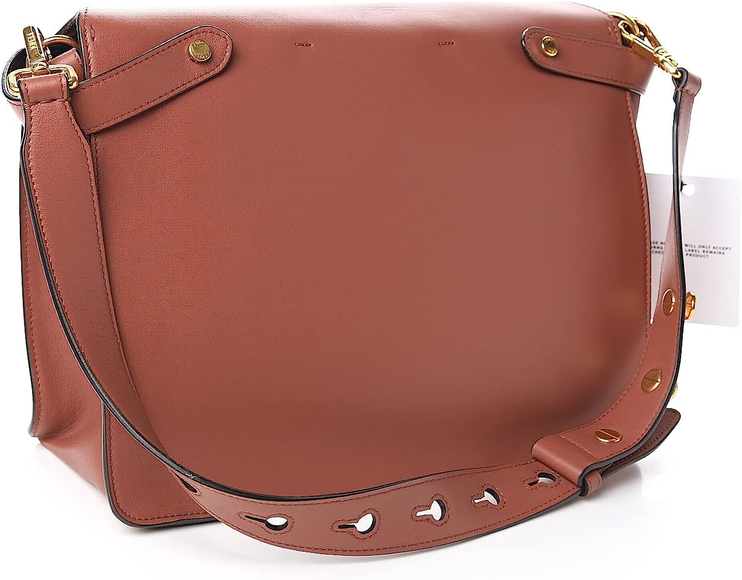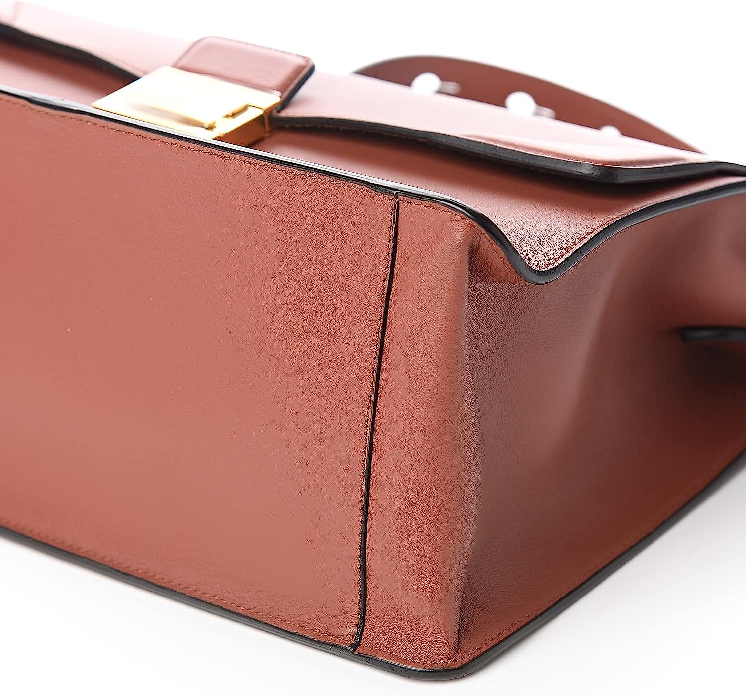 • Color: Rust Brown. Calfskin Leather. Gold-tone hardware. Push-lock closure. Interior brown suede and navy blue calfskin leather lining. One interior slip pocket with snap closure