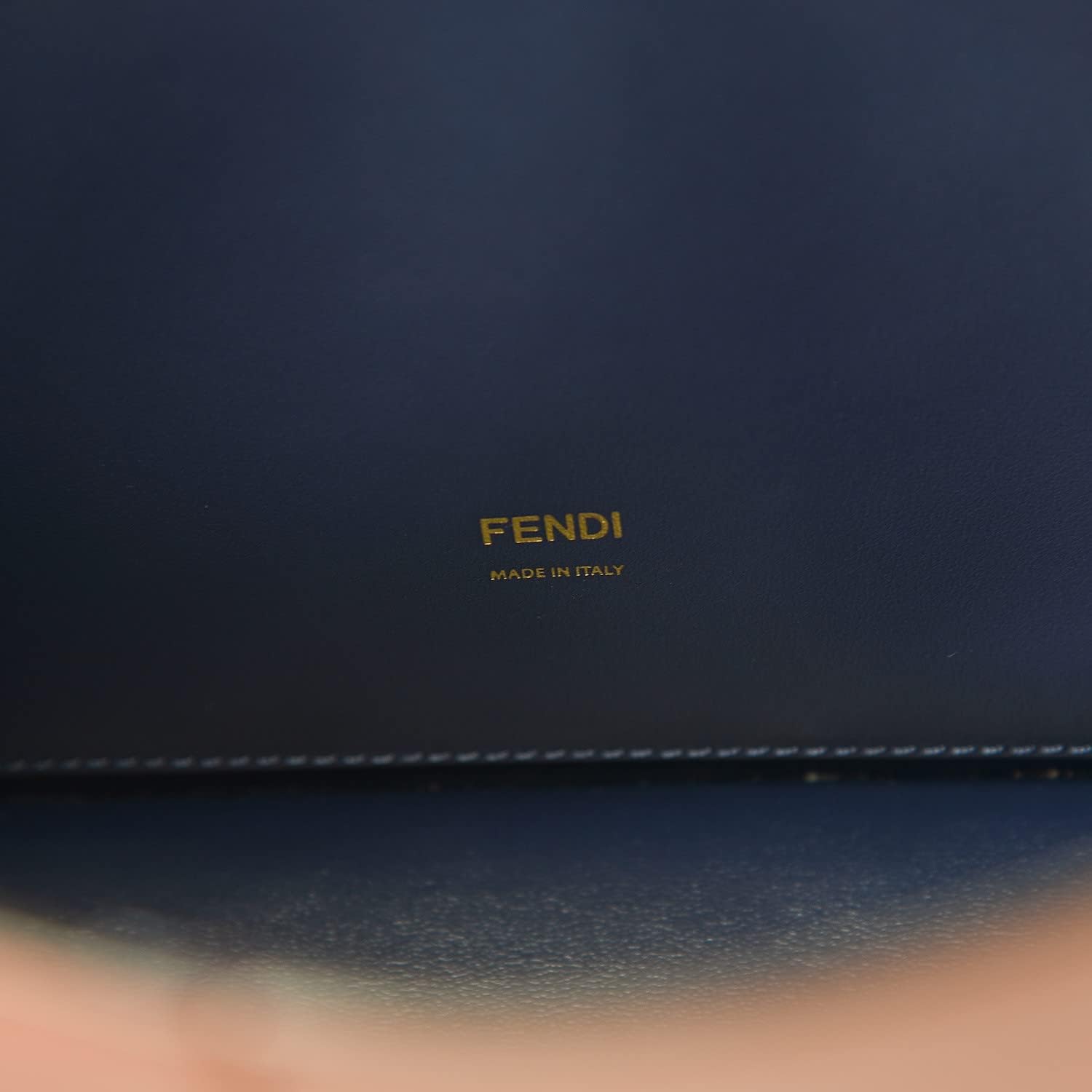 • This "Kan U" shoulder bag is crafted of calfskin leather in a rust brown color. The handbag features an adjustable leather shoulder strap. The front flap opens with a gold-tone push-lock to a spacious brown suede and navy blue leather lined interior with a patch pocket. This is the perfect everyday bag, from Fendi!