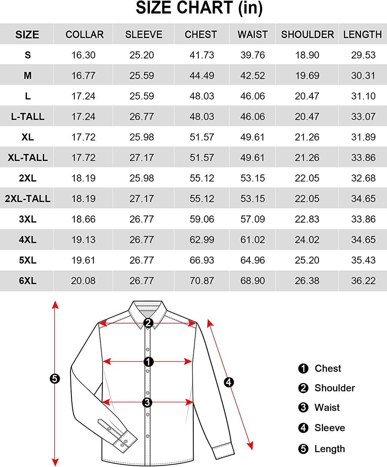• 【Occasion】Business/Wedding/Party/Dating, whether for formal occasions or daily casual, this mens dress shirt is a perfect choice; it is also an ideal gift for family, lovers and friends
