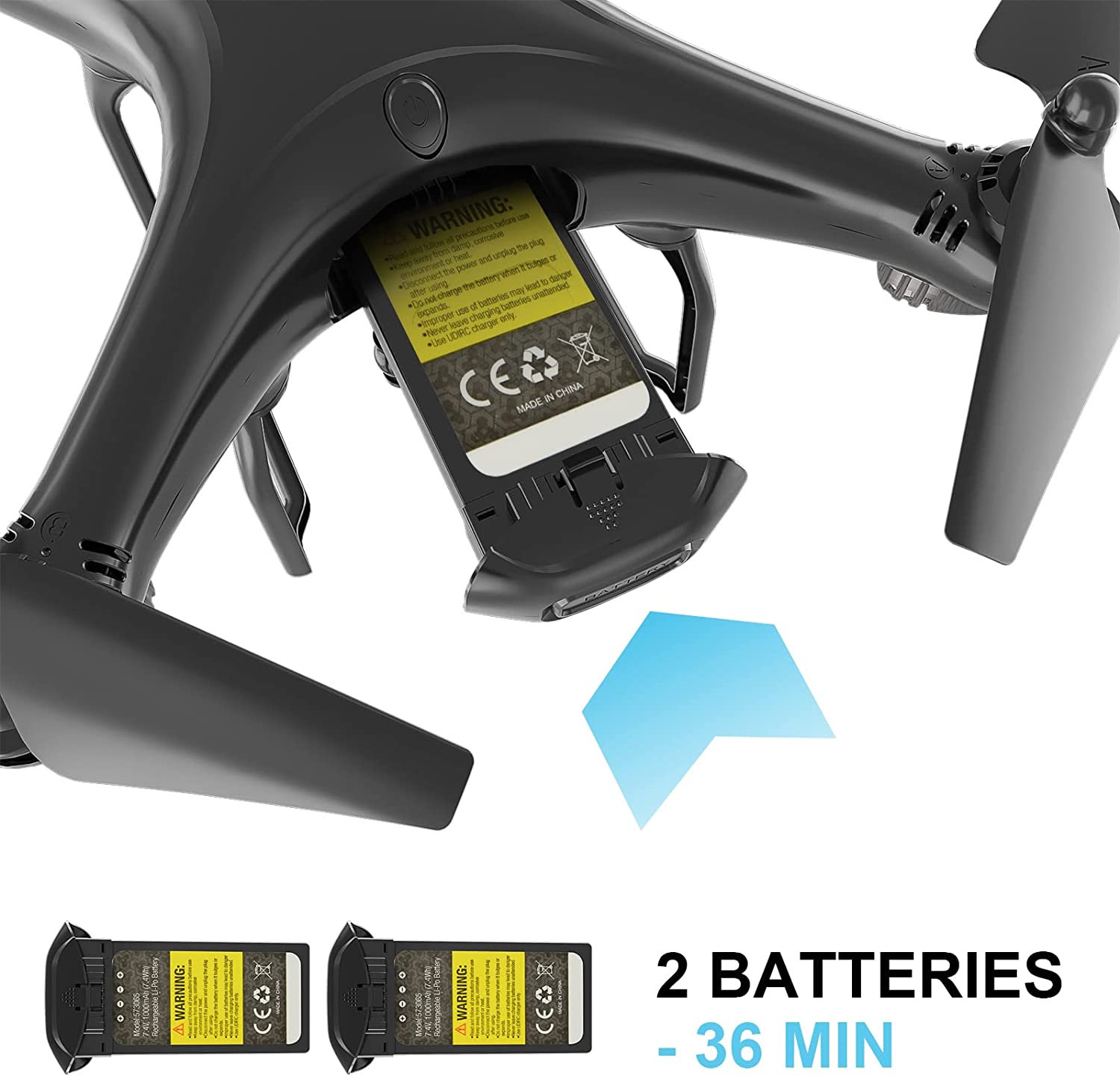• Double Flight Time: Comes with 2 modular batteries, each battery supports 18 minutes of flight, prolong your sky trip to up to 36 minutes. The drone also comes with a carrying bag, you can take the drone anywhere and keep it well when don’t need it.