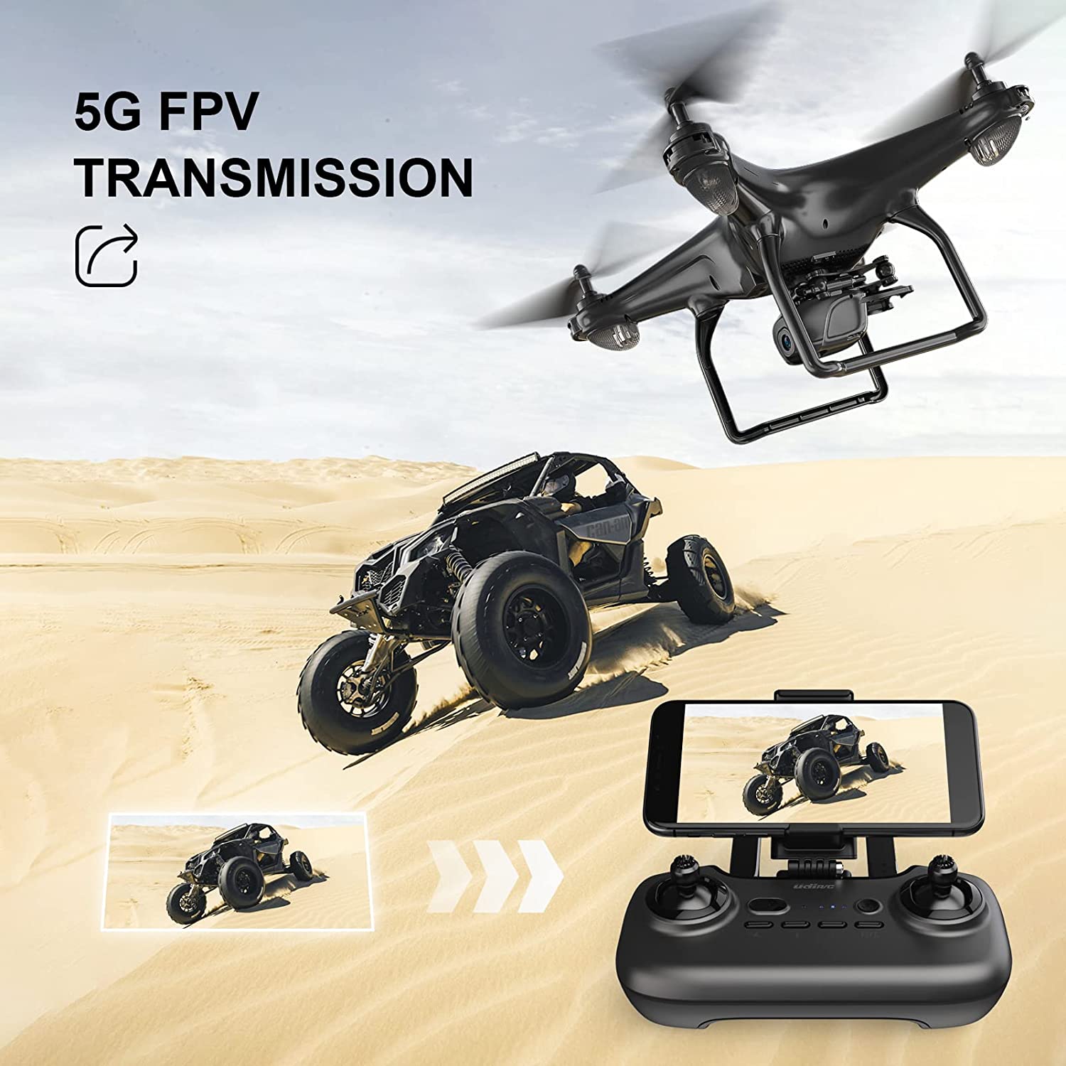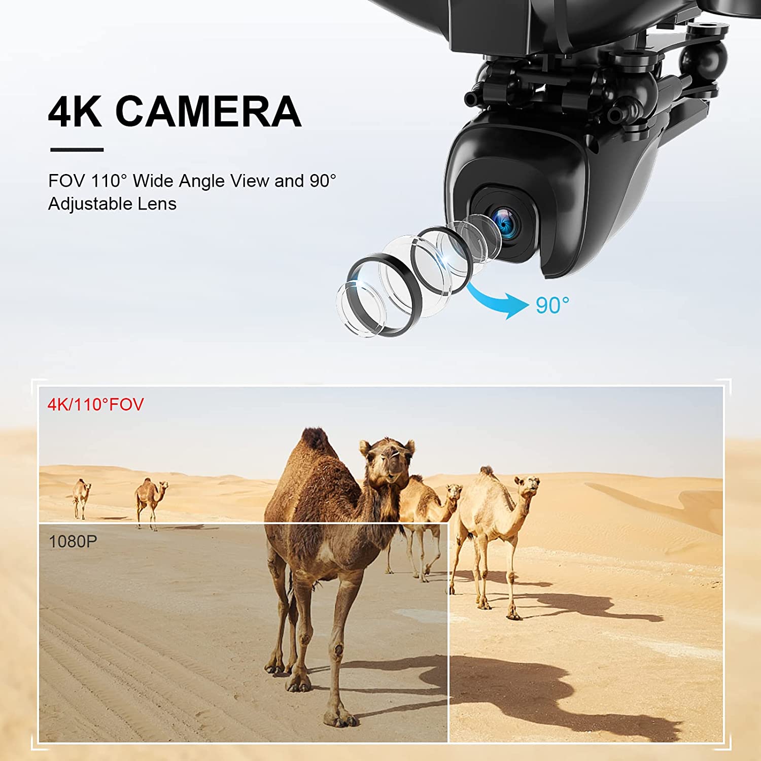 • 4K Camera and 5G Wi-Fi FPV: 4K Camera with FOV 110° wide-angle and 90° adjustable makes it possible to capture high resolution pictures and retain the most original details. 5G WiFi FPV transmission delivery a incredible clear and stable videos without delay.