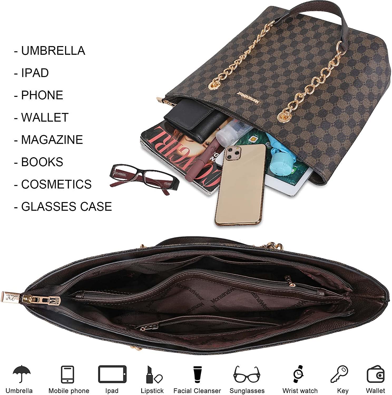Montana West Handbags for Women Chain Shoulder Vegan Leather Tote Bag Top Handle Handbag